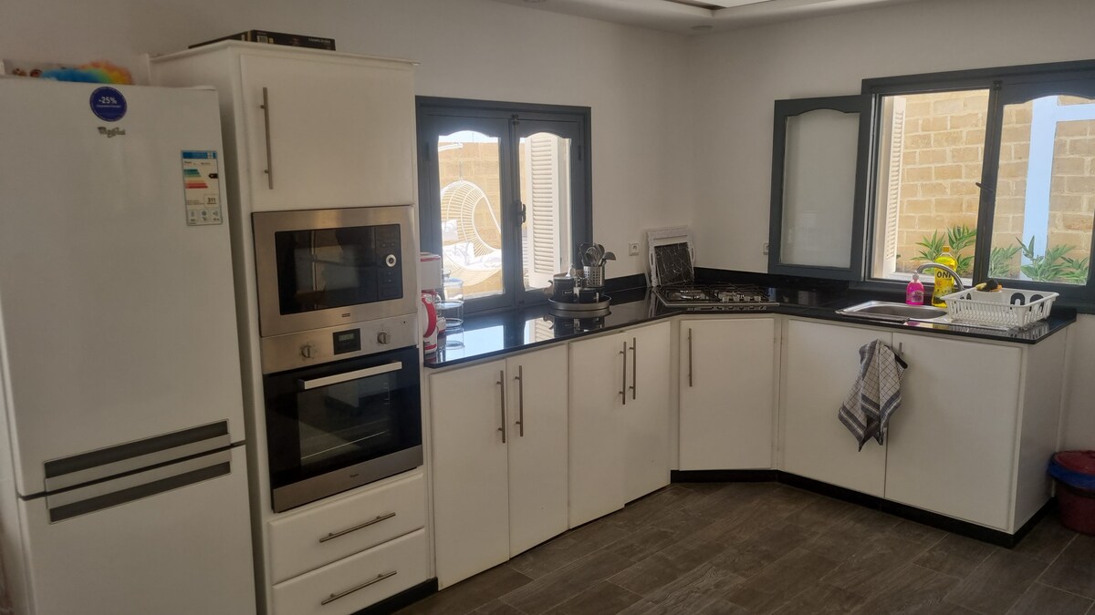 .★ Casa și piscina sunt complet private ★ Are vedere la plaja din Sidi Mghayt, cu priveliști uimitoare spre ocean și munți. Un adevărat paradis al păcii. ★ Micile figuranți ai casei ★ Două piscine, una de 4 metri pe 8 metri și 1,60 metri adâncime și o piscină cu vâsle pentru copii de 2,5 metri pe 4 metri și 60 cm adâncime. Toate camerele casei au vedere la mare. Grădină de legume ecologică și pomi fructiferi cu autoservire