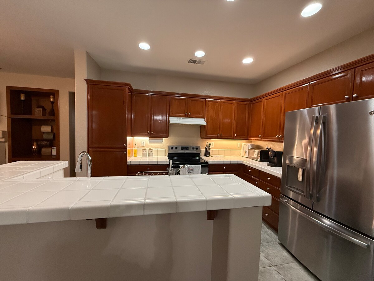 Bine ai venit la refugiul tău de lux din centrul orașului Modesto! Această locuință modernă 2BR/1,5BA complet remodelată oferă: • 1.150 mp de casă elegantă cu două etaje, cu spațiu de locuit spațios, cu bucătărie și băi noi • Curte mare cu iarbă căptușită, lumini Edison și vatră • Smart TV de 65”, WiFi 1200mbps, sistem de securitate 4K și garaj inteligent • Pat matrimonial cu birou, plus două paturi twin, toate cu lenjerie de pat premium • Distanță de mers pe jos până la restaurante rafinate, viață de noapte și atracții