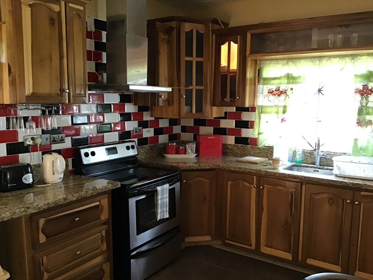 KGAP Ranch, a perfect family getaway. Enjoy the experience that this 3 bedroom,3.5 bathroom oasis has to offer. Located in a quiet,safe & centrally located neighborhood. Less than 3 minutes access to high way 2000, 30 minutes from Kingston where major attractions like Usain Bolt tracks & records,Club Meca, Macau Gaming lounge & Bar.We are one hour away from excursions in Ocho Rios.KGAP Ranch is equipped with coded doors & security gates. Our host is responsive and reachable 24 hours.