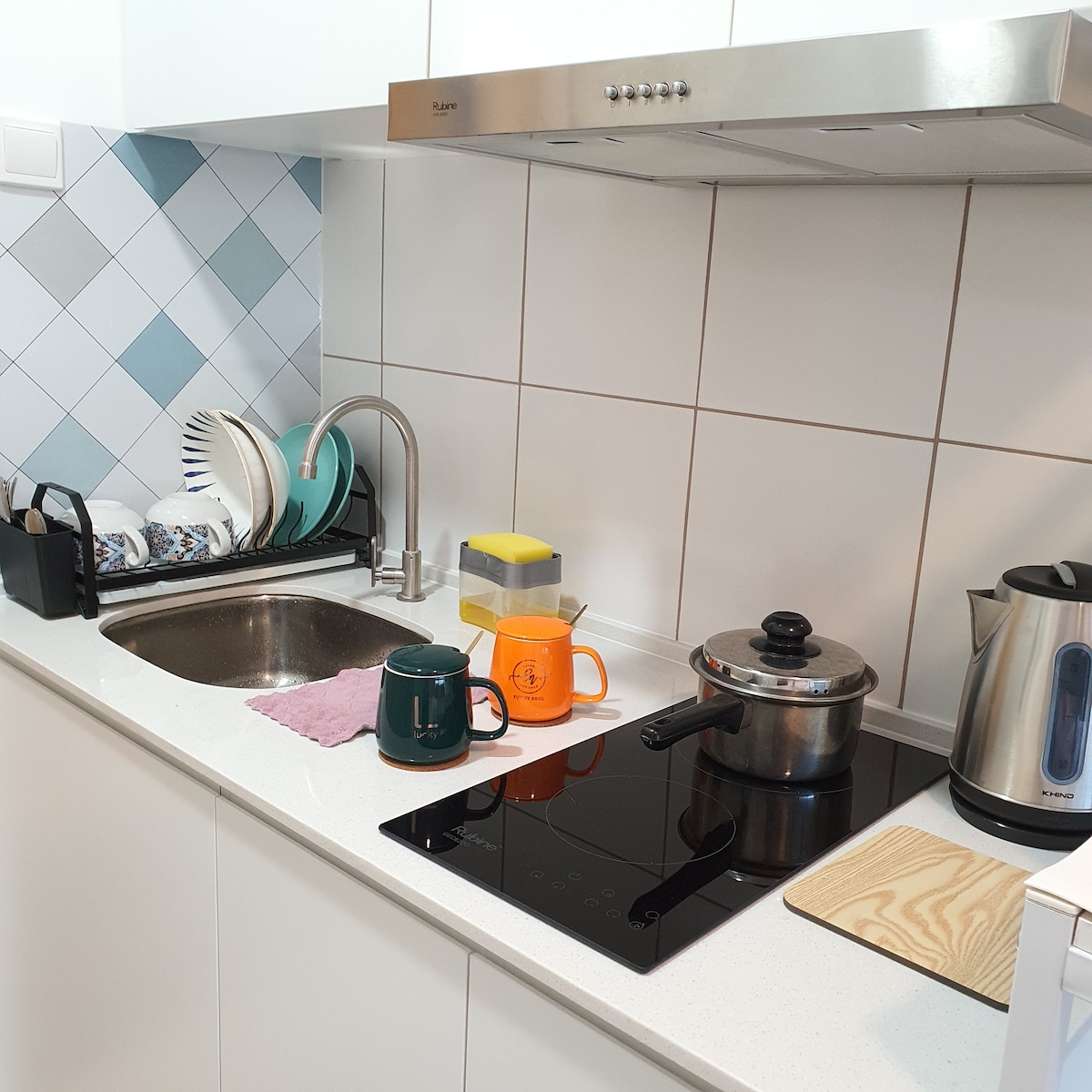 aici este - Zeva Residence Răsfață-te într-un studio confortabil de 455 s.f. pentru vacanță, călătorie de lucru, participarea la un eveniment memorabil. COMPLET mobilat, cu: - Wi-Fi GRATUIT (100 Mbps) - 2 aparate de aer condiționat - 1 pat king-size Koil Spring - Canapea extensibilă - TV LCD de 32" - mașină de spălat - Frigider - Cuptor cu microunde - Fierbător - aragaz cu inducție și ustensile - Încălzitor de apă - numai 2 prosoape - articole de toaletă - Dulap de bucătărie și masă de sufragerie - Construiește în dulap - Uscător de păr - Reducere săptămânală de fier 10% Reducere lunară 13%