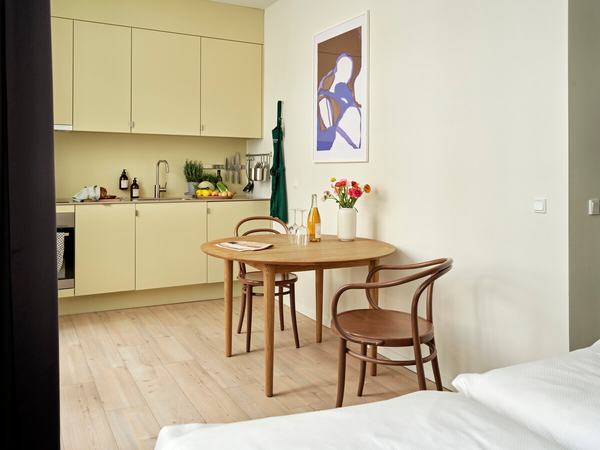 The convenient and cool one-bedroom apartments perfectly matches singles or couples for a Copenhagen weekend getaway. Attracted by modern design and the luxury of a full kitchen travellers also love the big windows with street views and the digital self check-in process. The spacious bathrooms, comfortable kingsize beds and separate dining spaces makes these our favourite one-bedroom apartments in the city. This listing is a licensed short term rental.