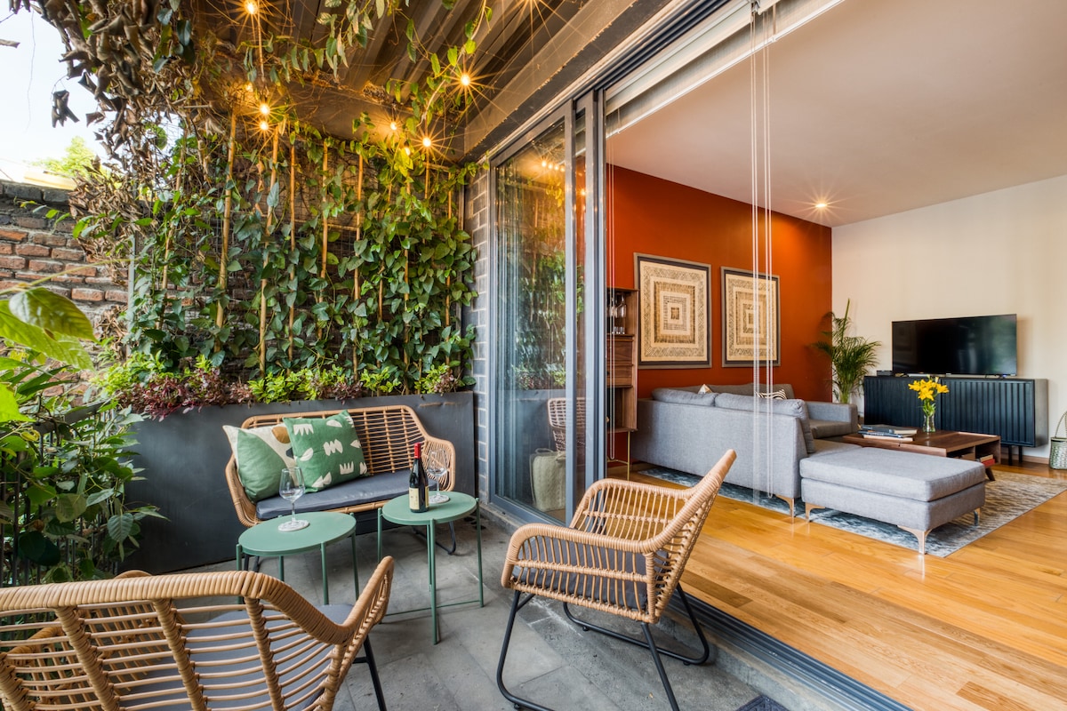 Perfect for experiencing the vibrancy of one of Mexico City’s most coveted neighborhoods, Colonia Roma –steps away from the coolest local hotspots including restaurants, bars, boutiques, shopping and cultural landmarks. This stylish one-bedroom apartment offers luxury and comfort with high ceilings, ample natural light, and modern furnishings. It features an open living area, a private terrace, and a tranquil bedroom with a king-size bed and workspace.