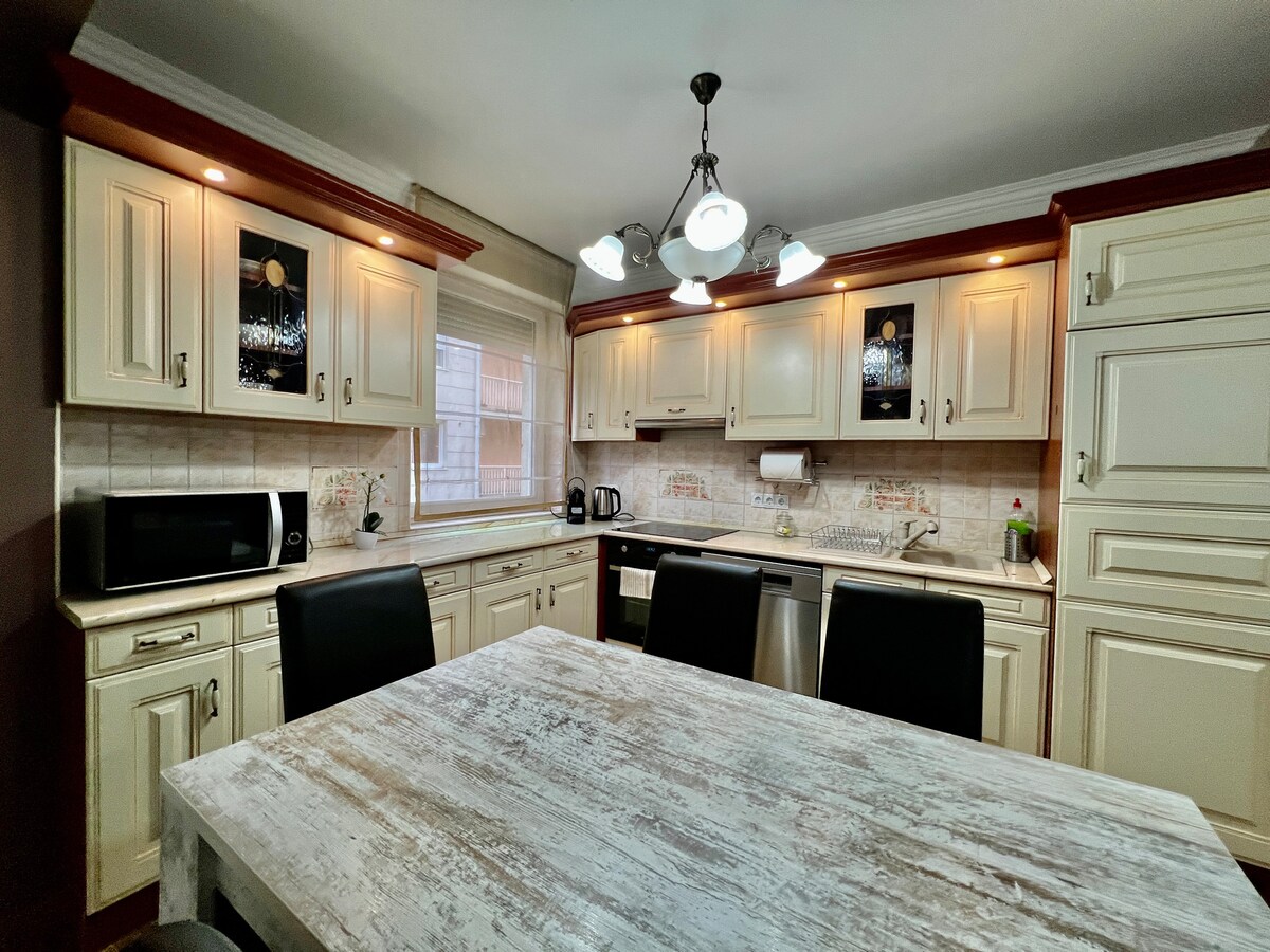 Bucurați-vă de o experiență uimitoare in aceasta locatie moderna ultra-centrala, situata într-o clădire istorică la doar 250 de metri distanță de Primărie, foarte spațios și luminos, cu o terasă deschisă. Apartamentul are tot ce ți-ai putea dori pentru a avea o experiență de neuitat. Locatia este perfect apentru cupluri sau familii de până la 6 persoane datorită canapelei din dormitorul principal. Chiar daca se află în cea mai bună locație centrală, locatia este foarte liniștită.