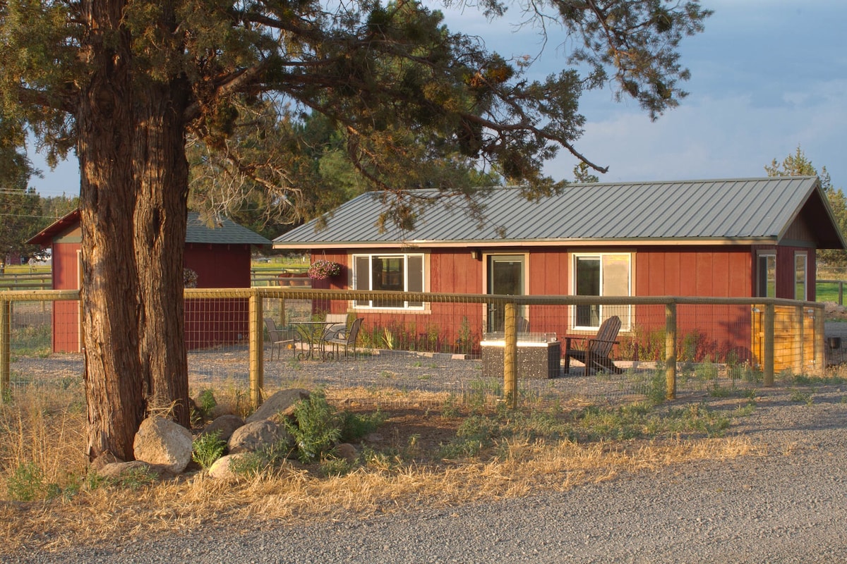 Bucură-te de casa noastră de oaspeți privată/detașată și trezește-te înconjurat de natură pe o proprietate de 20 de acri mărginită de ferme și priveliști ale Munților Surorilor. WI-FI excelent. Dispunând de loc de nuntă, Sage & Honey Spa, închirieri de tuburi/veste de salvare. La etajul 2, 1 pat matrimonial, 1 pat matrimonial, canapea extensibilă matrimonială, bucătărie completă, frigider, mașină de spălat vase, cuptor cu microunde, plită, prăjitor de pâine, Keuirg. 17 minute până în centrul orașului Bend, 12 minute până în centrul orașului Redmond/Aeroport, 35 de minute până la Mt. Burlac, 30 de minute până la Surori, 10 minute până la Tumalo.