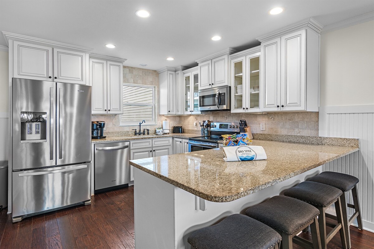 Bring the whole family to this great Ground floor condo with lots of room for fun. King Suite with attached full bathroom plus 2nd bedroom complete with 2 Queen beds. Plenty of space to spread out in the open Livingroom Dining room. Easy access to awesome semi private back yard perfect for Fido! Super close walking distance to Private Beach entrance just across scenic Highway, beside Captain Dave's! Resort includes year round access to beach and tennis courts plus pool. Seasonally heated.