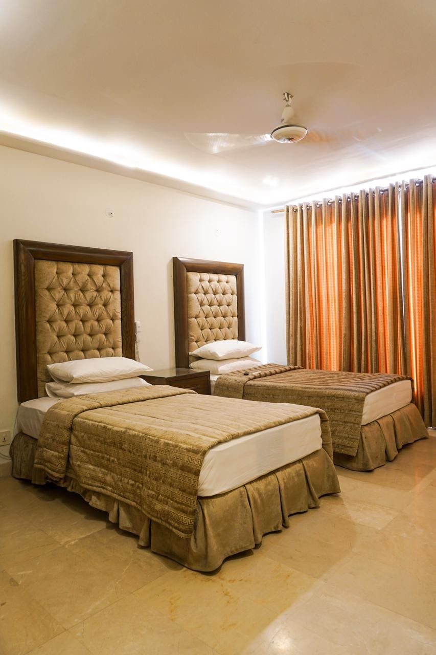 - Apartament cu un dormitor la ultimul etaj - Personal non-stop la fața locului pentru a răspunde nevoilor tale - Clădire orientată spre familie, nu găzduim petreceri/cupluri necăsătorite - spațiu de parcare subteran dedicat - Situat în apropiere de Johar Town, oferind acces facil la dotări - este necesar un card de identitate sau un pașaport - Cafenea care livrează mâncare direct în camera ta - La aproximativ 25 de minute de aeroport pentru confort de călătorie - Escapadă perfectă