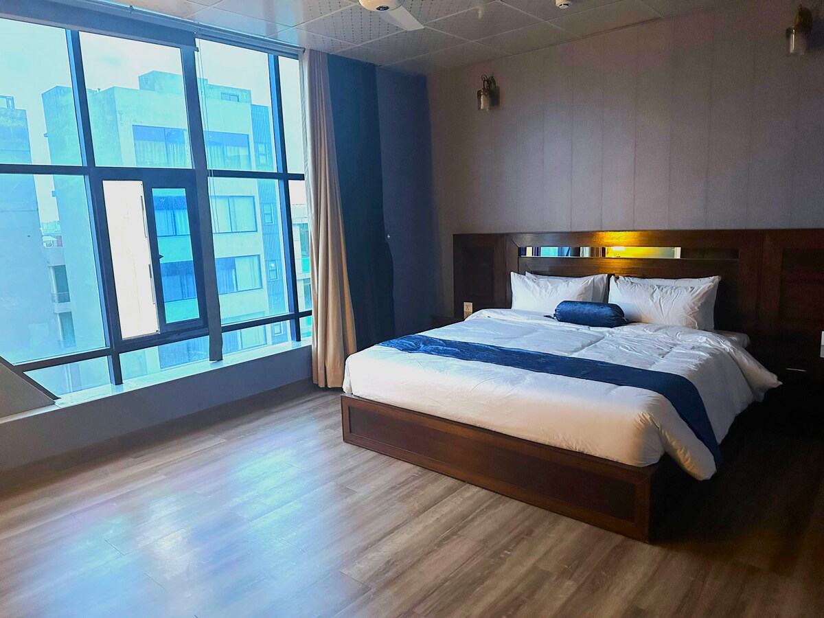 Experimentează stilul de viață de designer la Luniq, la doar câțiva pași de MM Alam Road, inima cafenelelor, buticurilor și vieții de noapte din Lahore. • 🛋️ Salon estetic cu covoare confortabile, lampă suspendată și perdele lungi • 🛏️ Pat king-size luxos cu lenjerie de pat premium și vedere la oraș • Televizor inteligent Android de 55” cu Netflix și YouTube Premium • 🍳 Bucătărie modernă complet utilată, cu dotări esențiale • ⚡ Wi-Fi rapid pentru muncă sau streaming • 🔑 Check-in independent fără probleme pentru intimitate completă • 🌆 Locație excelentă în Gulberg