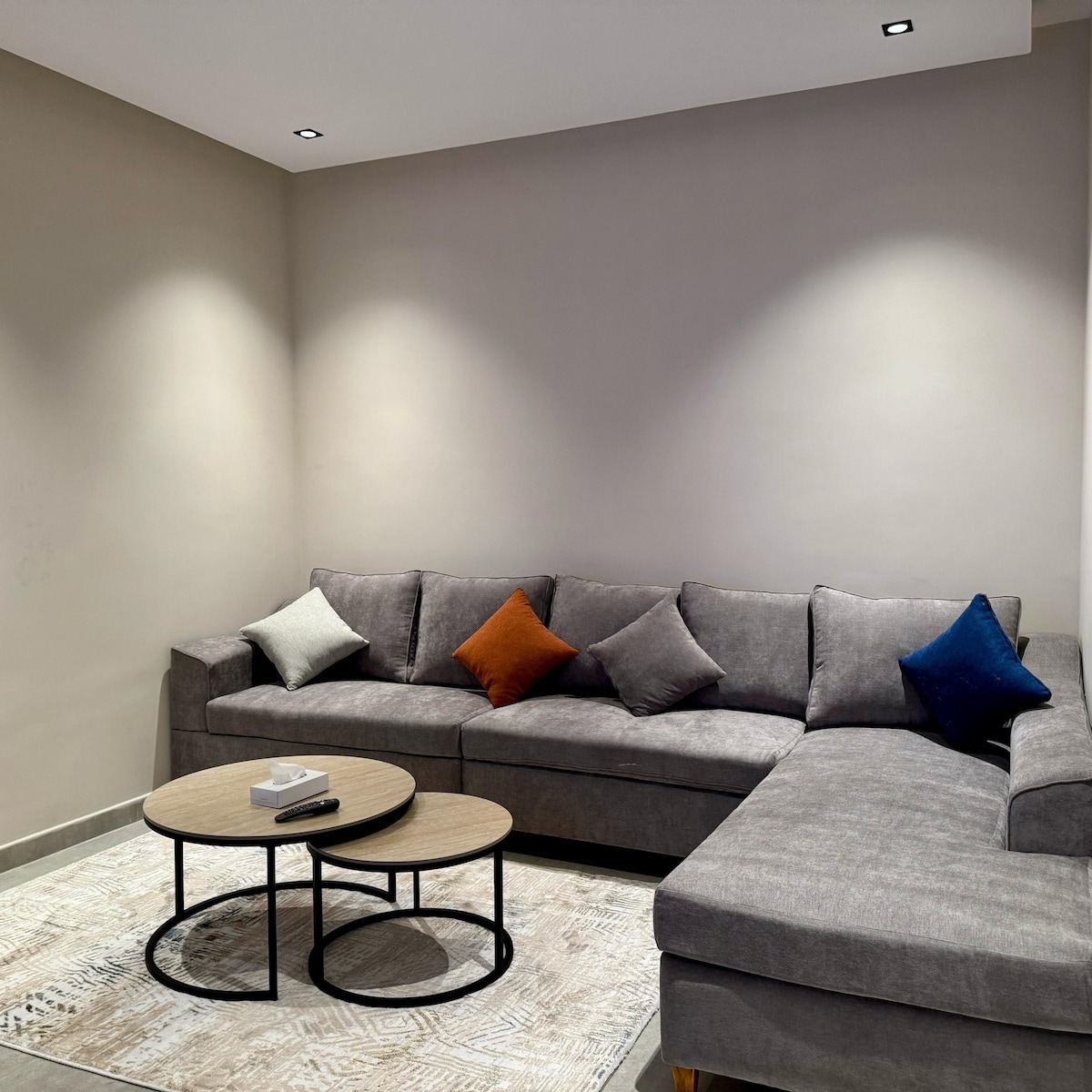 A modern apartment designed for an exceptional stay, located in one of Riyadh’s finest neighborhoods with a stunning view of KAFD. It features an outdoor seating area with a screen and projector for enjoyable evenings. For your comfort, the bed includes a high-quality 14cm extra layer. “We also offer event coordination services for special occasions (including cake and accessories) for an additional fee with prior booking, ensuring an unforgettable experience “