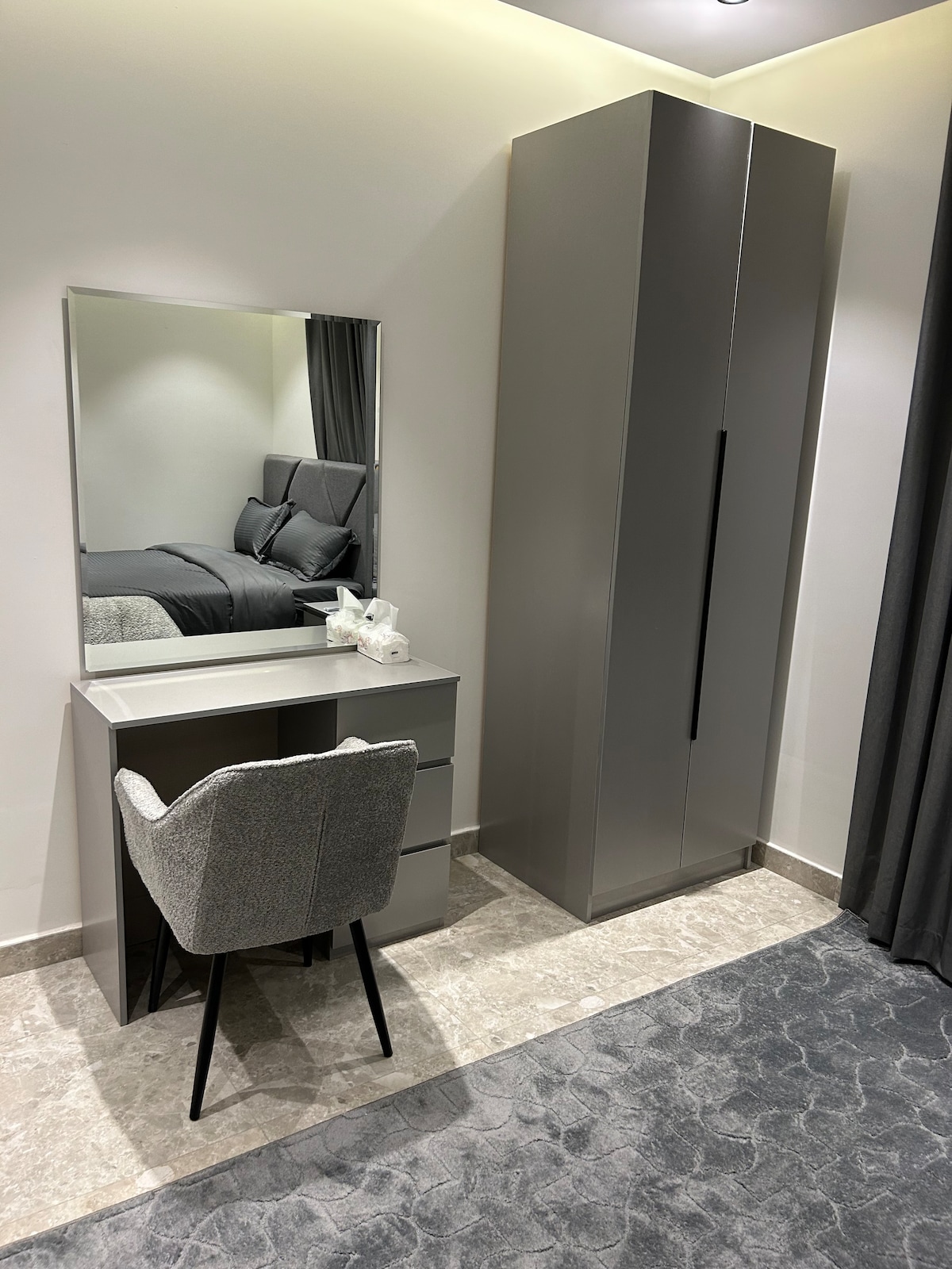 استوديو بتصميم دافئ ومريح، مثالي للراحة أو العمل. يضم سرير ماستر، شاشة 65 بوصة مع Netflix، ركن كوفي مجهز، ومنطقة جلوس. خدمة فندقية، واي فاي، طاقم نظافة ومشرف متواجد دائمًا لخدمتكم.