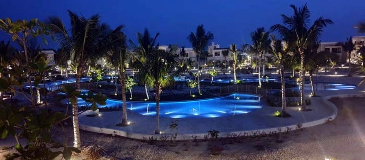 Relaxează-te în acest spațiu calm și elegant. Experiență minunată în Hwana Salalah, în mijlocul a trei hoteluri de 5 stele (Al fanar-Al jwaira-Rotana) Lângă terenul de joacă pentru copii în aer liber, cu sală de fitness în aer liber,teren de tenis, parc acvatic
