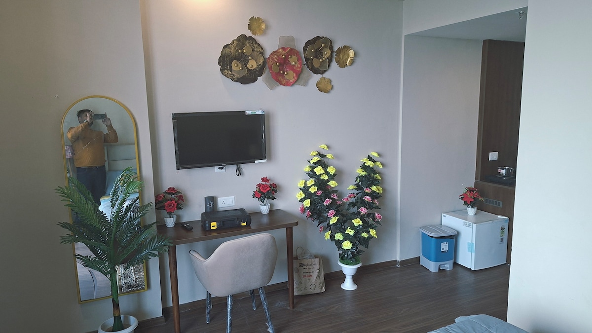 Bine ai venit la apartamentul tău elegant de lângă Expo Mart, Greater Noida! Situat perfect la doar câteva minute de vibrantul Expo Mart, acest studio modern și confortabil oferă un sejur confortabil și convenabil pentru călătorii de afaceri, cupluri sau aventurieri solo. Indiferent dacă te afli în oraș pentru un eveniment, explorezi orașul sau ai nevoie doar de un refugiu relaxant, studioul nostru este conceput pentru a răspunde tuturor nevoilor tale.