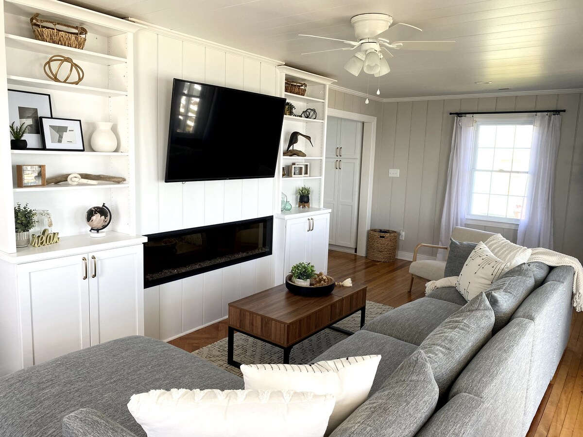 Blue Heron Waterside te așteaptă... Cadă cu hidromasaj privată și piscină!Pe malul apei și pe chei - caiace incluse! Acest refugiu este pregătit cu tine în minte pentru o escapadă specială. Relaxează-te. Bucură-te de a fi împreună, plus spațiu pentru a avea timp liniștit. Camera de zi, puntea spațioasă, piscina privată, cada cu hidromasaj și debarcaderul creează o experiență de viață pe malul apei. Ia o carte, fă o baie sau un lounge lângă piscină. Explorează apa cu o varietate de caiace plus o placă cu vâsle în picioare. Locație excelentă pentru a pescui și crabi de pe dig. Ești gata?