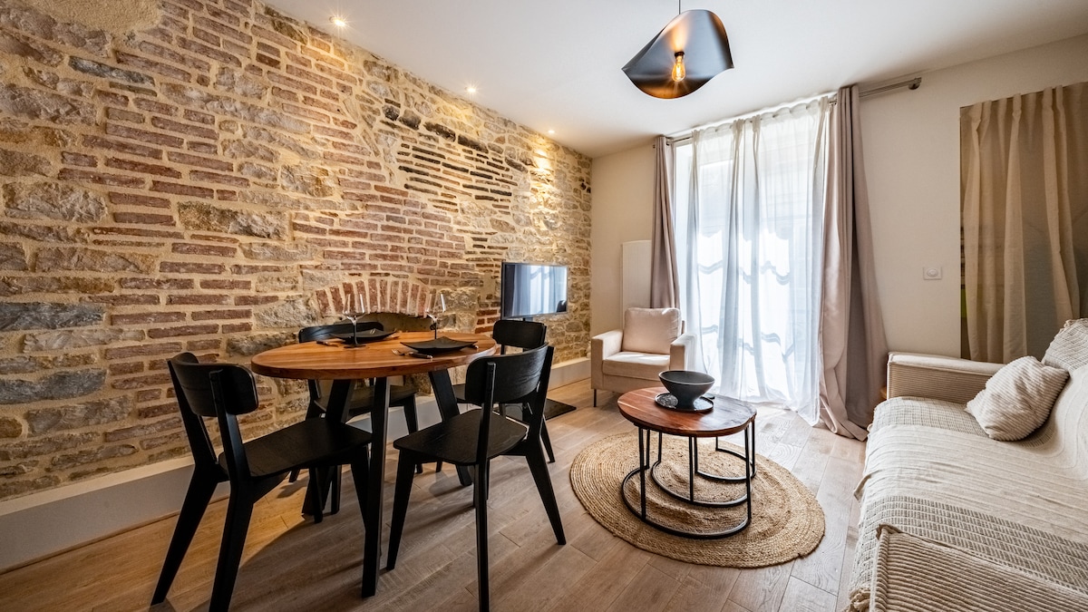 Apartamentul de 35 m2 este situat sub acoperişurile unei case din secolul al XVI-lea clasificată drept Monument Istoric. Acesta este situat ideal în inima centrului istoric al orașului Dijon, în districtul Antique Shopping, aproape de Palatul Ducilor și Muzeul de Arte Frumoase. Acesta a fost complet renovat într-un spirit autentic și cald, cu tot confortul modern.