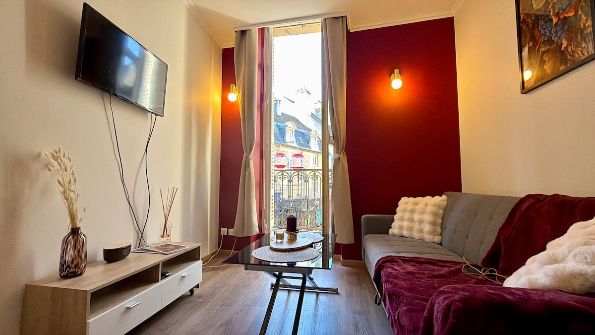 Nous avons entièrement rénové notre appartement en plein centre ville pour en faire un espace chaleureux et agréable à vivre. Tout est pensé pour votre confort : un salon accueillant, une cuisine équipée, une chambre avec une literie confortable et une salle de bain moderne. Vous y trouverez tout le nécessaire pour un séjour sans souci : WiFi, machine à laver, sèche-cheveux… Que vous soyez en voyage ou en déplacement, nous serons ravis de vous accueillir !