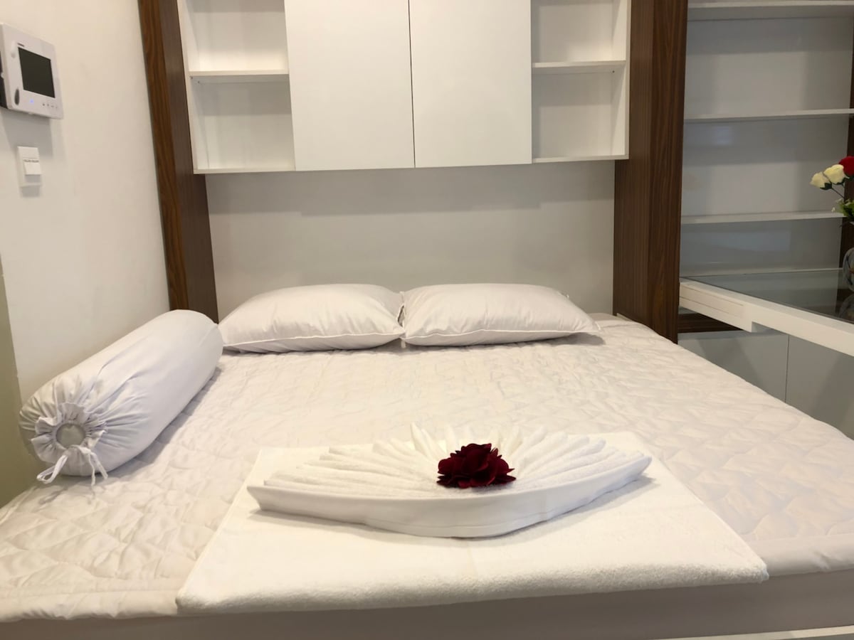 Un apartament studio frumos proiectat, cu tot ce ai nevoie, situat central, dar ascuns suficient pentru o noapte liniștită de somn departe de zgomotul puternic al orașului. Excelent pentru călătorii care doresc să exploreze Saigonul și care caută confort de calitate și o experiență mai locală. - Piscină frumoasă - Wi-Fi rapid gratuit, televiziune prin cablu - Dotări gratuite pentru locuința ta: mașină de spălat rufe, uscător, aer condiționat, frigider, apă caldă - Bucătărie cu suficiente unelte pentru gătit. Notă: nu furnizează/acceptă facturi cu TVA