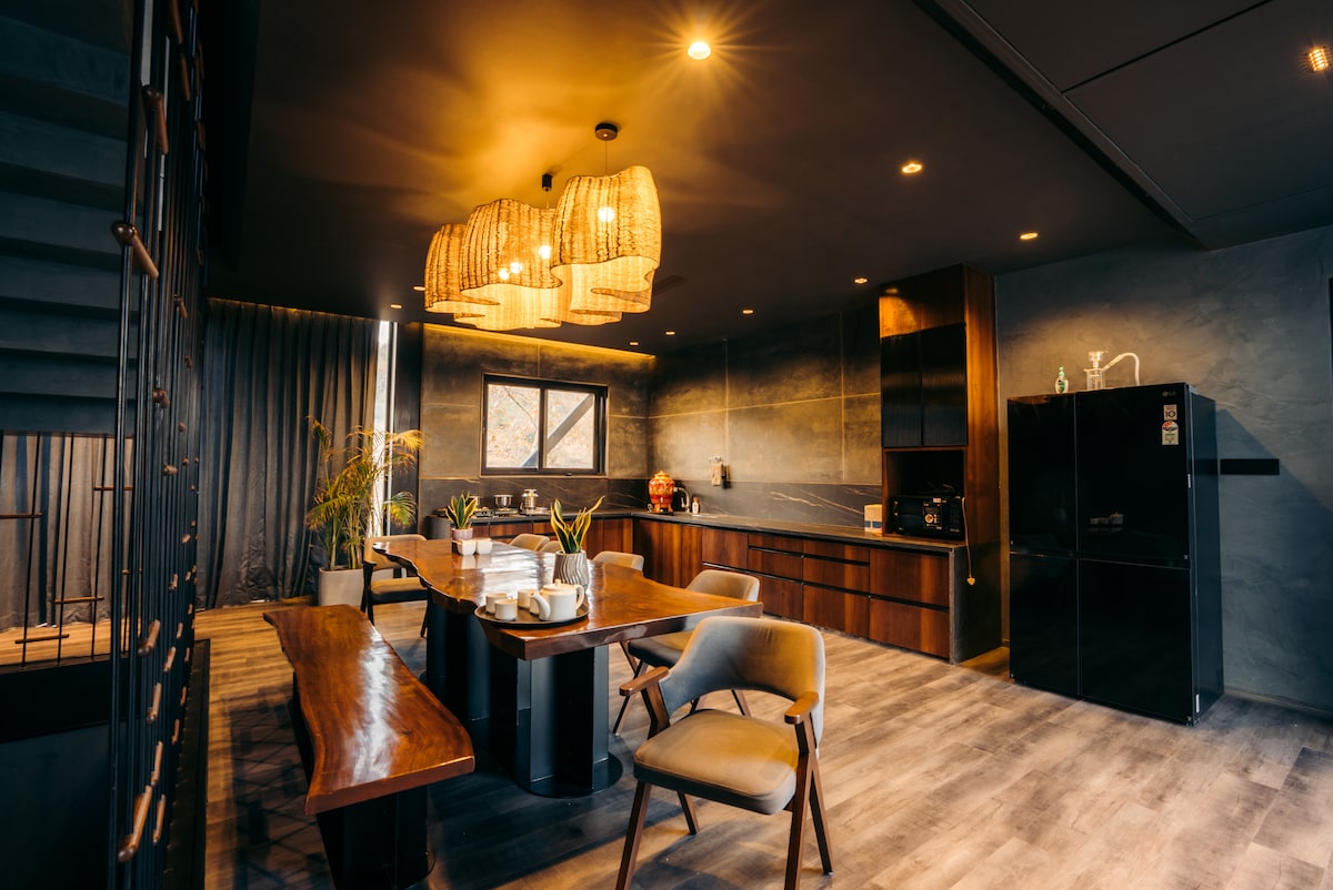 Gir Glades | O fermă de lux cuibărită în inima orașului Gir – țara maiestuoasă a leilor asiatici. Ferma se mândrește cu: ✔ 2 dormitoare super king-size gigantice – spațioase, elegante și concepute pentru confort suprem ✔ 1 cameră pe puntea superioară ✔ Piscină infinită – o piscină care se îmbină fără probleme cu orizontul ✔ Bali Nets & Terrace Lounge cu jacuzzi Livadă ✔ de mango întinse ✔ Living spațios și bucătărie complet mobilată ✔ 5 băi spațioase Zonă de mic dejun și luat masa în ✔ aer liber