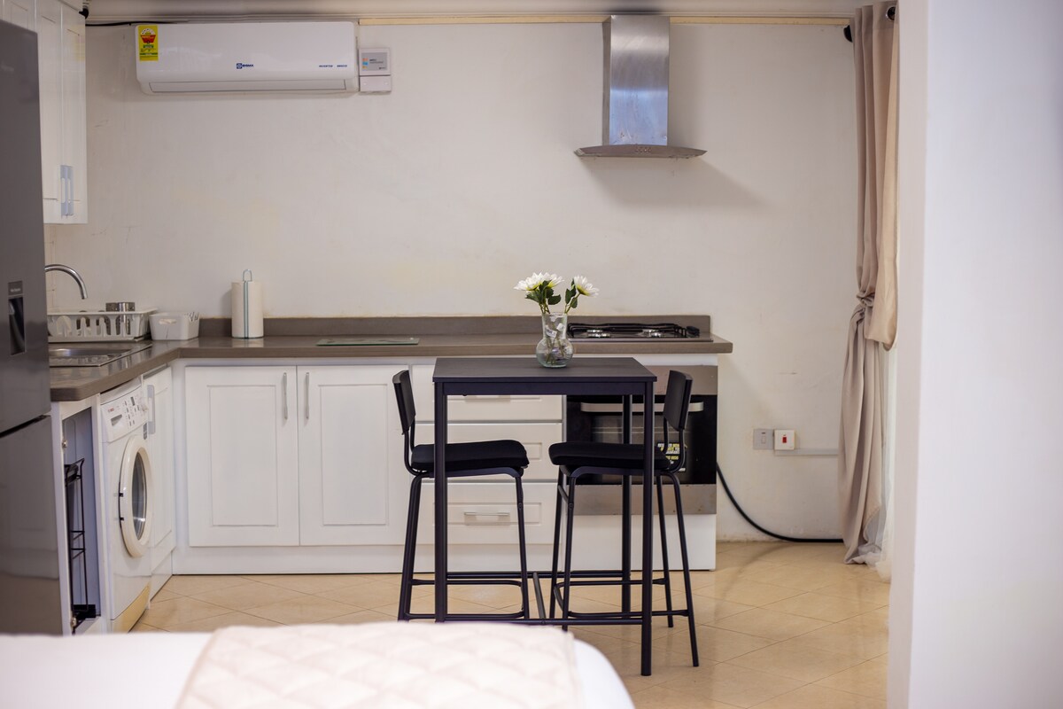 Stylish 1-Bedroom Apartment (Self-Contained) – Your fully equipped urban retreat in central location Enjoy all the comforts: solar powered with power 24/7 and A/C, speedy Wi-Fi, and a TV with all channels. The apartment features a full bed, a fully-equipped kitchenette (microwave, fridge, washer), and a modern bathroom with a bathtub and water heater. Free Parking is included. Perfect for short or extended stays in Takoradi, Fijai near Greater Height School. Book your comfortable stay now!