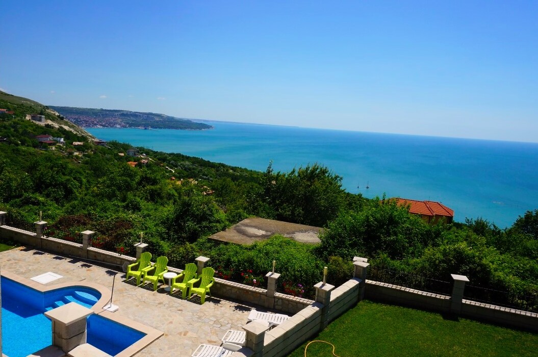 O nouă vilă confortabilă de vacanță de închiriat pe Black Sea Cost cu piscină privată, jacuzzi , vedere la mare, zonă de grătar, grădină minunată cu fructe de sezon. Dispunere excelentă într-un loc liniștit între Balcic și Albena, în apropiere de drum cu loc de parcare.