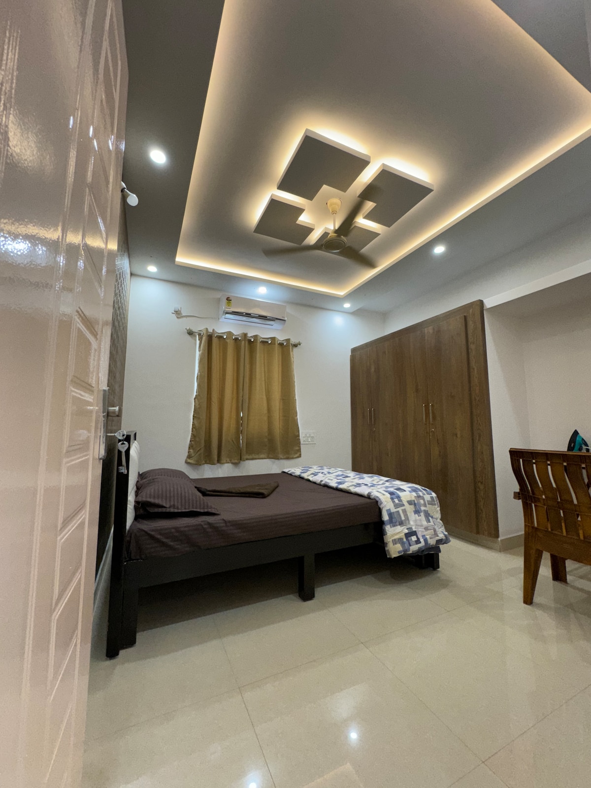 Stai în noul nostru apartament 1BHK din Electronic City Faza 1, la doar 2 minute de Neeladri Road. Amplasat pe o alee liniștită și pașnică, acest spațiu confortabil este perfect pentru două persoane, familii, persoane singure sau cupluri. Bucură-te de interioare în tonuri pastelate, Wi-Fi rapid, o bucătărie complet utilată, zonă de luat masa, lift, alimentare de rezervă și un smart TV de 40 de inch unde poți să te relaxezi cu Netflix. Ideal pentru muncă sau petrecere a timpului liber, cu cafenele, magazine și parcuri tehnologice în apropiere. O clădire sigură și calmă, cu tot ce trebuie pentru o ședere confortabilă.