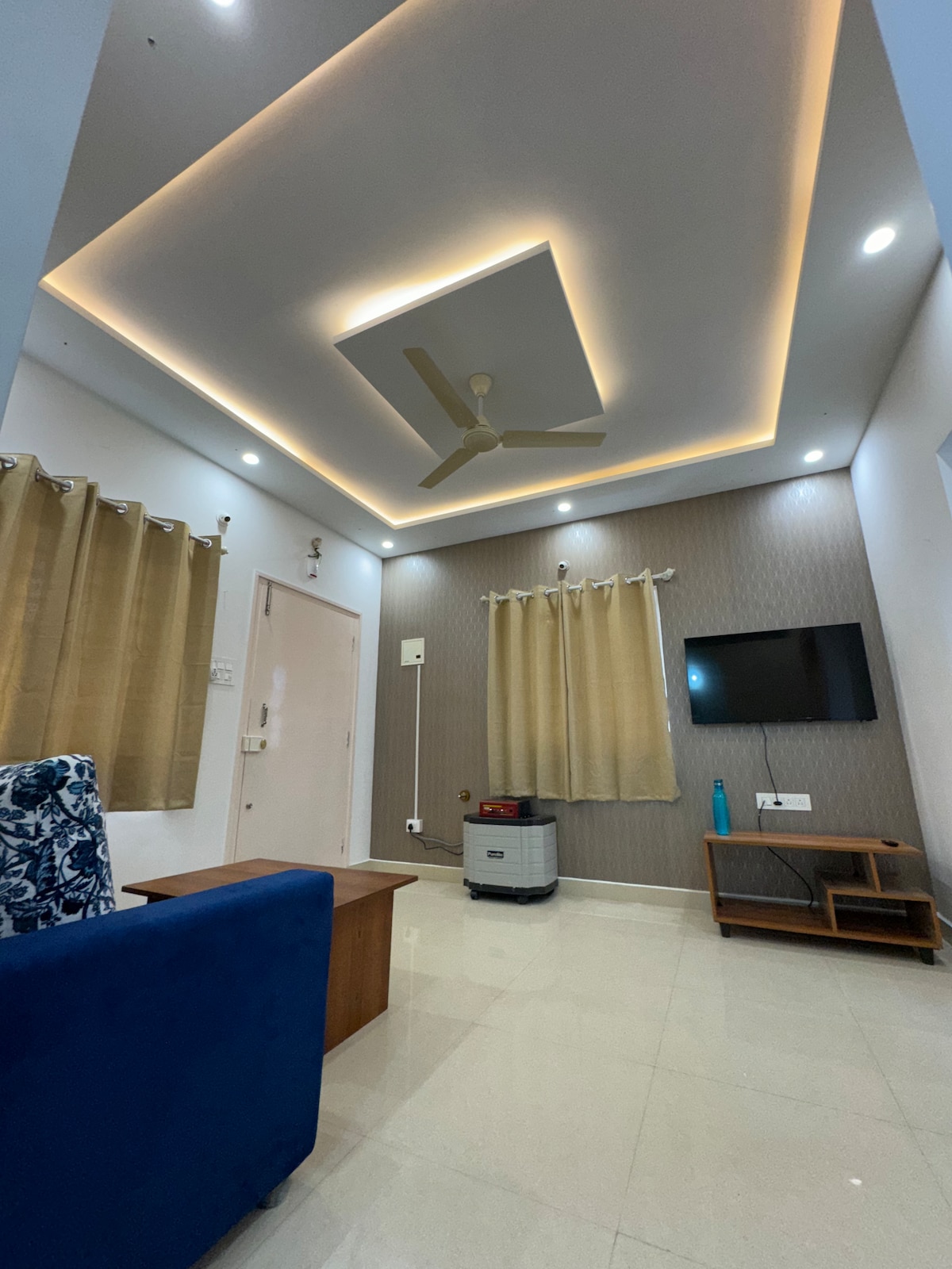 Experience a blend of comfort and style in this premium 5th-floor 1BHK. Located right by IIMB, this space is designed for those who value both function and aesthetics. Entertainment: 50" 4K Smart TV with Netflix & Prime, plus a private recliner. Work & Connectivity: High-speed Wi-Fi throughout the apartment. Comfort: A fully equipped gourmet kitchen and a premium sleep system with luxury linens. Style: Designer interiors with blue-velvet accents and sweeping views of the Bangalore skyline.