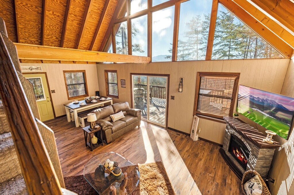 **Cea mai bună locație posibilă - 1 milă până la Dollywood ** Televizoare inteligente Roku de 65” și 50”, așa că adu-ți propriile date de conectare și parole pentru Netflix, Hulu, Disney+ etc. Nu există canale prin cablu/satelit ** Cadă cu hidromasaj privată pentru 4 persoane **Spațiu de lucru dedicat pentru lucrul cu 500 Mbps+ Wi-Fi de mare viteză ** Scaune uimitoare cu hamac pe terasa din spate **Cafenea: 12 cești Carafe, o singură ceașcă Keurig și presă franceză ** Șemineu cu două fețe pentru acele seri răcoroase ** Cadă cu jacuzzi pentru 2 persoane în dormitor ** Pat matrimonial în care să te întinzi