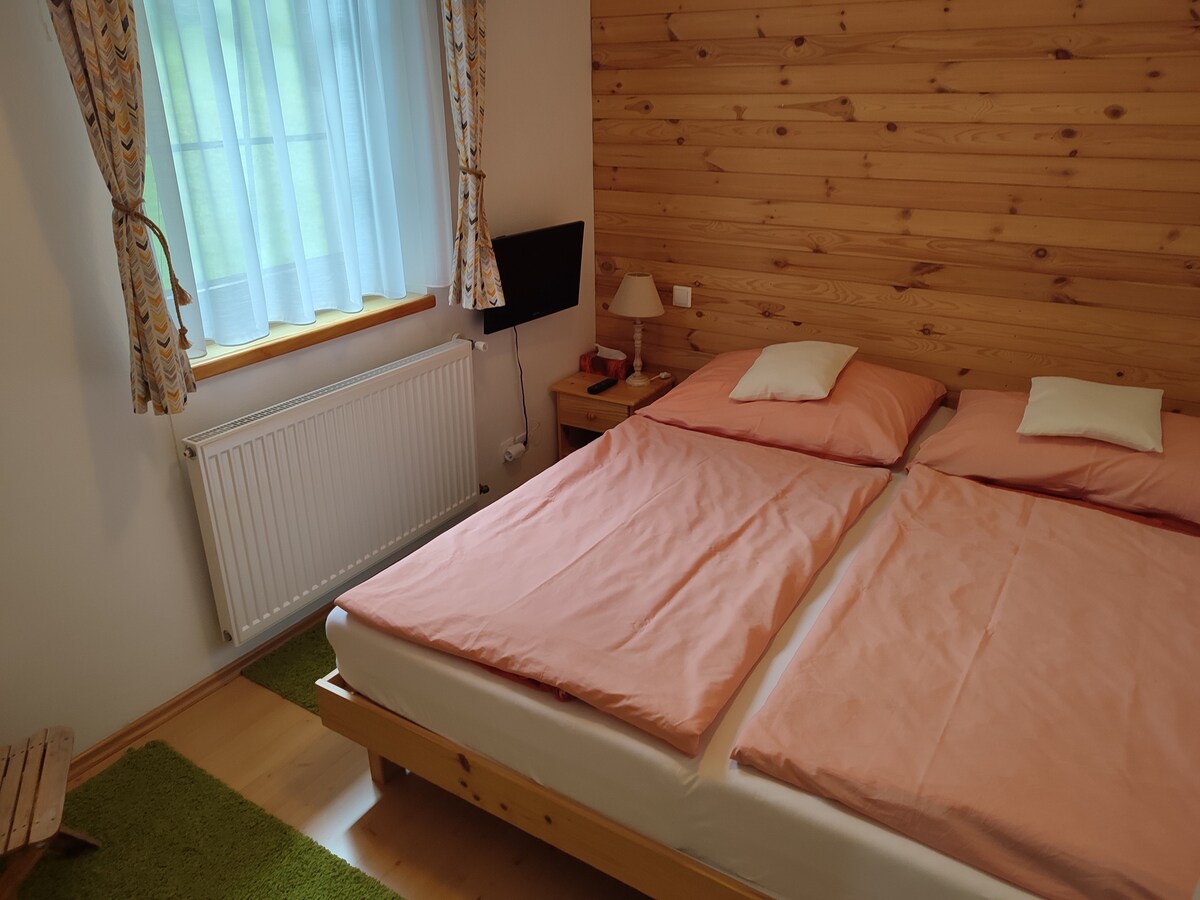Our cozy and quiet apartment is located in our family house in Lánov (Prostřední Lánov). We have a garden, right under the forest. The apartment has its own separate entrance from the other side of the house. It's pleasantly cool in the summer, and we've prepared floor heating for you this winter, so you won't be cold inside. Parking is in front of the house behind the gate on private land. For up to 2 Persons, no more kid!
