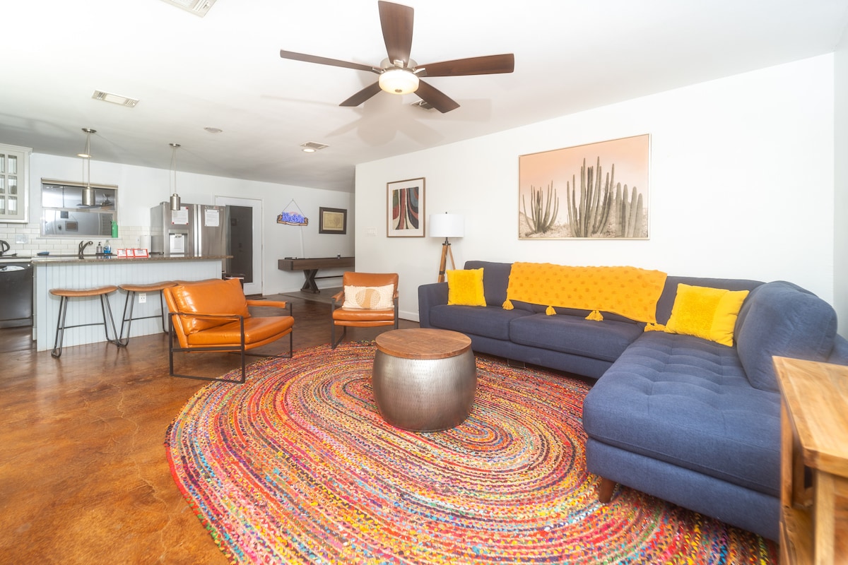 Bine ai venit la Boho Bungalow, un apartament privat frumos remodelat, cu 1 dormitor și 1 baie, în NW Austin. Ce îți va plăcea: • Decor boho elegant, cu un plan de etaj luminos și deschis, creând un mediu confortabil, dar liniștit • Intrare privată, terasă acoperită imensă în aer liber și parcare dedicată pentru până la 4 vehicule •Situat într-un cartier liniștit din Austin, convenabil pentru atracții de top, cumpărături și restaurante