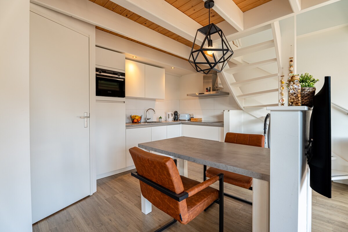 Nou construit în 2018. Studio aproape de plajă într-un cartier liniștit. La câțiva pași de centrul orașului Domburg. Studio frumos și spațios pentru 2 persoane, cu terasă orientată spre sud, zonă de relaxare lângă ușile de grădină. Zona de duș este dotată cu un duș spațios cu panouri de căldură cu infraroșu pentru relaxarea gâtului și a spatelui. Bucătărie de lux complet utilată. Dormitor cu mansardă. Clădire anexă frumoasă din lemn de stejar, cu o atmosferă rustică și liniștitoare. Lenjerie de pat și prosoape disponibile.
