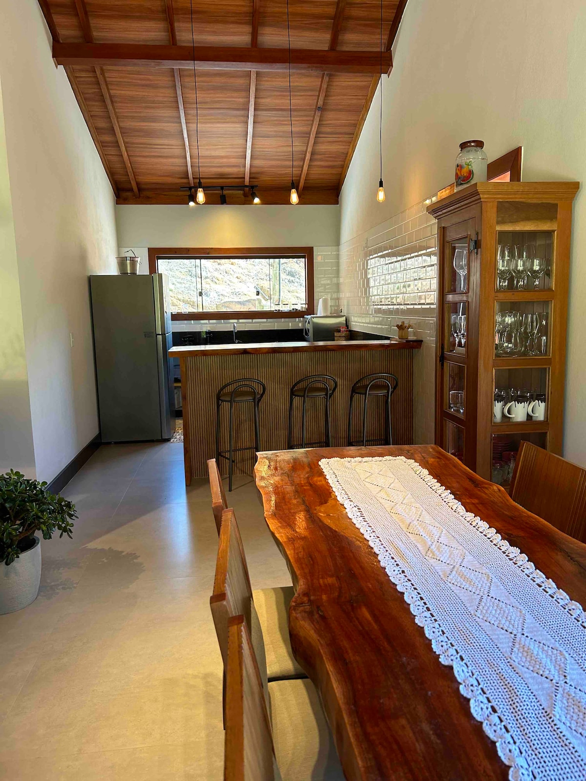Casa Plenitude da Montanha: seu refúgio de paz na serra capixaba. Casa de dois pavimentos situada em um dos melhores condomínios de Pedra Azul, a 2km da rota do Lagarto. São duas suítes climatizadas (quente/frio), cada uma com 1 cama de casal + 1 de solteiro, e uma sala íntima com sofá-cama confortável. Ideal para casais e pequenos grupos, com ou sem filhos. A casa é cercada de áreas verdes, tranquilidade absoluta! **Julho 2026: mínimo de 3 noites**