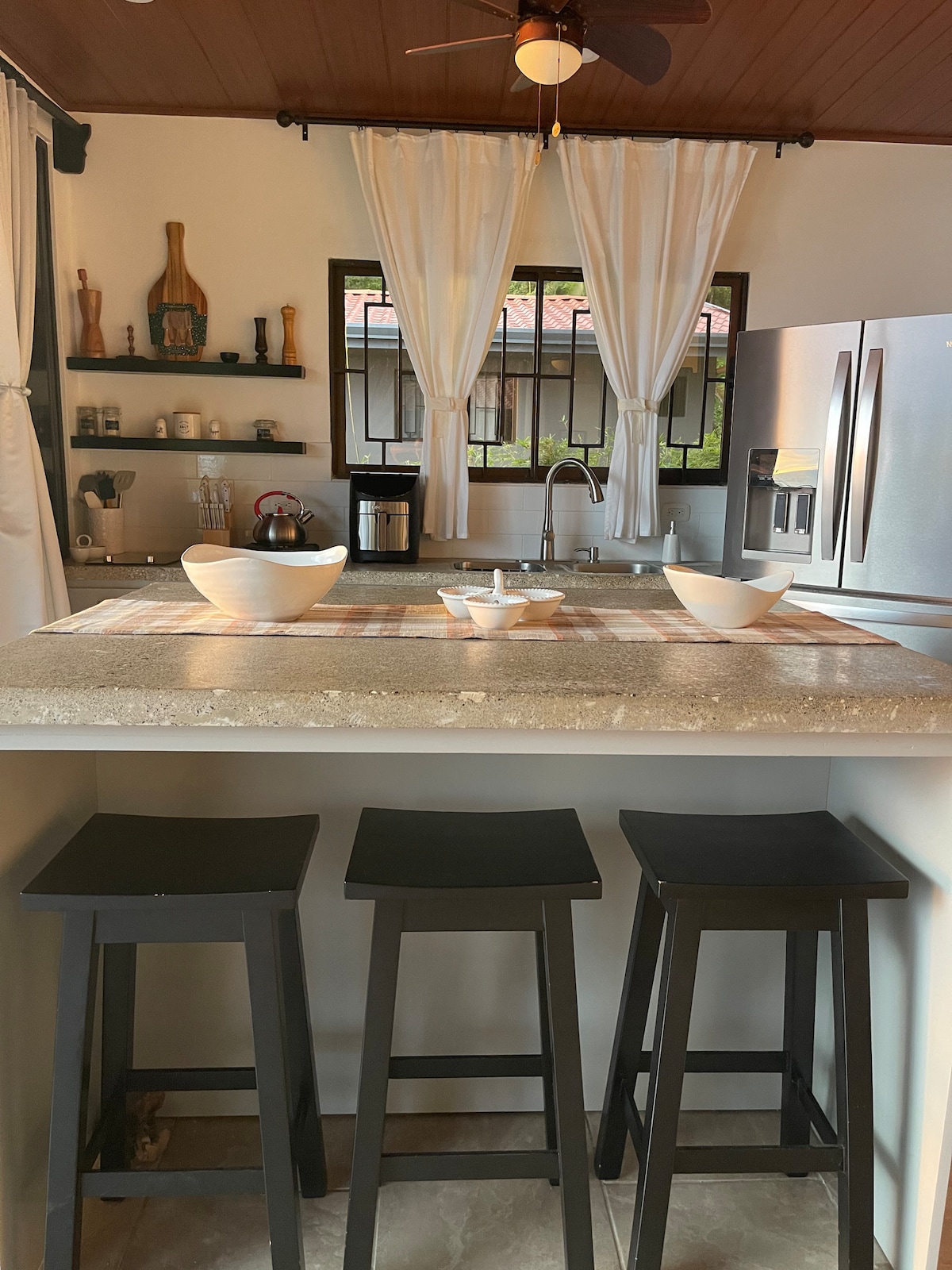 Adormi și te trezești cu bâlbâitul blând al unui pârâu din pădurea tropicală din apropiere, cu valurile oceanului îndepărtate și cu păsările tropicale în vârfurile strălucitoare ale copacilor. Acest 1bd/1ba modern, dar confortabil, are toate dotările esențiale pentru bucătărie, grătar și o baie de lux cu vedere la junglă și capete duble de duș. Ieși afară și intră în piscina cu margini infinite, cu iluminare personalizabilă și vedere la ocean. Maimuțele, leneșii, tucanii, coati și cascadele abundă. Înconjoară-te de o frumusețe liniștită, vibrantă, naturală.