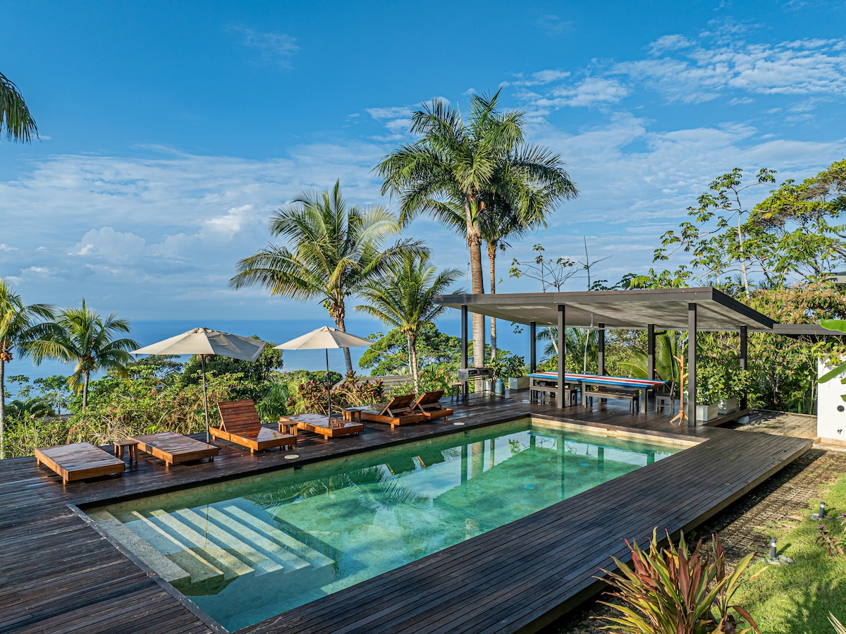Imaginează-ți că te trezești în propria casă privată, la 1.000 de metri deasupra nivelului mării, doar voi doi. Diminețile încep lent, cu o cafea în mână pe terasă, cu vedere panoramică de 180° la ocean, cer și munții maiestuoși din Dominical. După ce explorezi cascadele din apropiere sau te relaxezi lângă piscina comună, reîmprospătează-te cu un duș luxos cu efect de ploaie, în timp ce partenerul tău pregătește cina cu ingrediente locale proaspete în bucătăria completă. Viață fără cusur în interior/exterior în Costa Rica... captivantă, naturală și numai a ta!