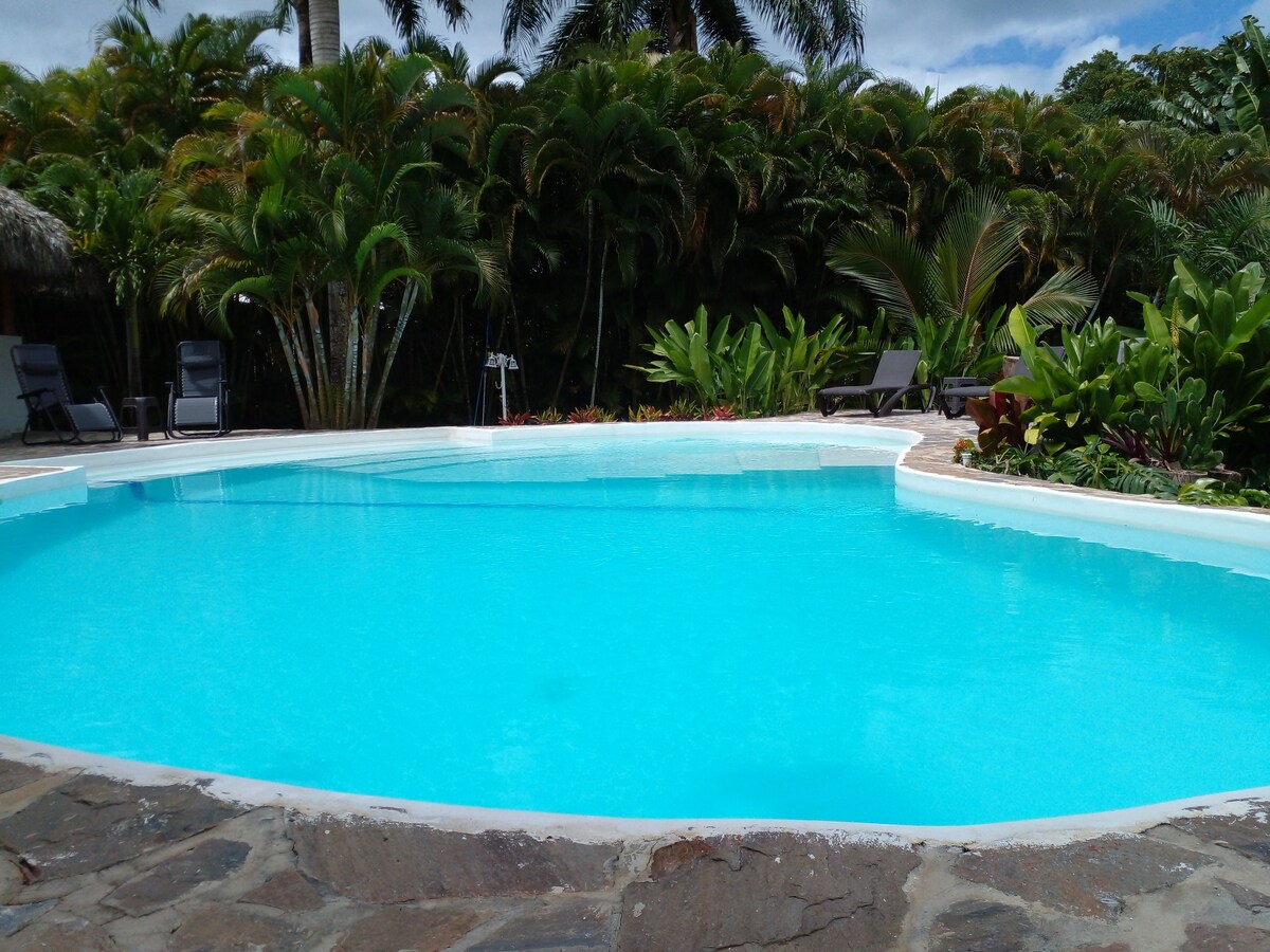 Unul dintre cele 3 bungalow-uri/studiouri drăguțe în stil caraibian, într-o grădină tropicală mare și încântătoare, plină de palmieri, fructe tropicale și vegetație din pădurea tropicală. Poți să te plimbi prin grădină, să te relaxezi, să practici yoga sau să culegi fructe. Iubitorii de natură vor iubi acest loc! La doar câteva minute de mers cu mașina de centrul orașului și de plaje, dar totuși într-o grădină liniștită, departe de mulțime și de traficul aglomerat. Plajele din apropiere Playa Bonita și Coson sunt adesea enumerate printre cele mai bune din întreaga Caraibe!
