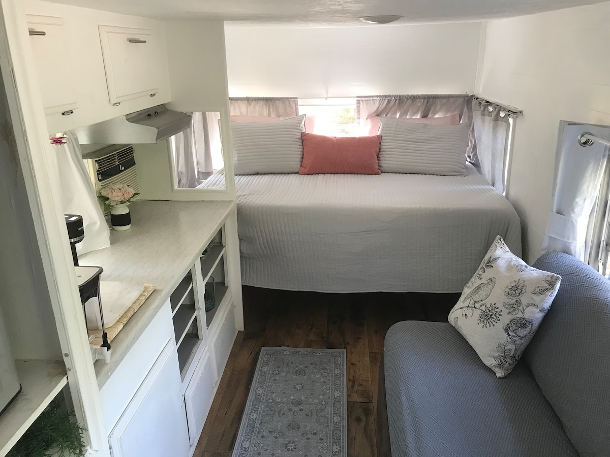 Cute, immaculate RV in the midst of historical horse farms. Ride, bicycle, swim, kayak, SUP and a plethora of other things in our backyard. Stay on a working horse farm in a private, safe area located near many attractions! Queen size bad with a high end mattress and memory foam topper, tall shower with seat and kitchen stocked with a few basic items including Keurig coffee machine and pods, wine glasses, pots, utensils, dish soap, shampoo, towels et.