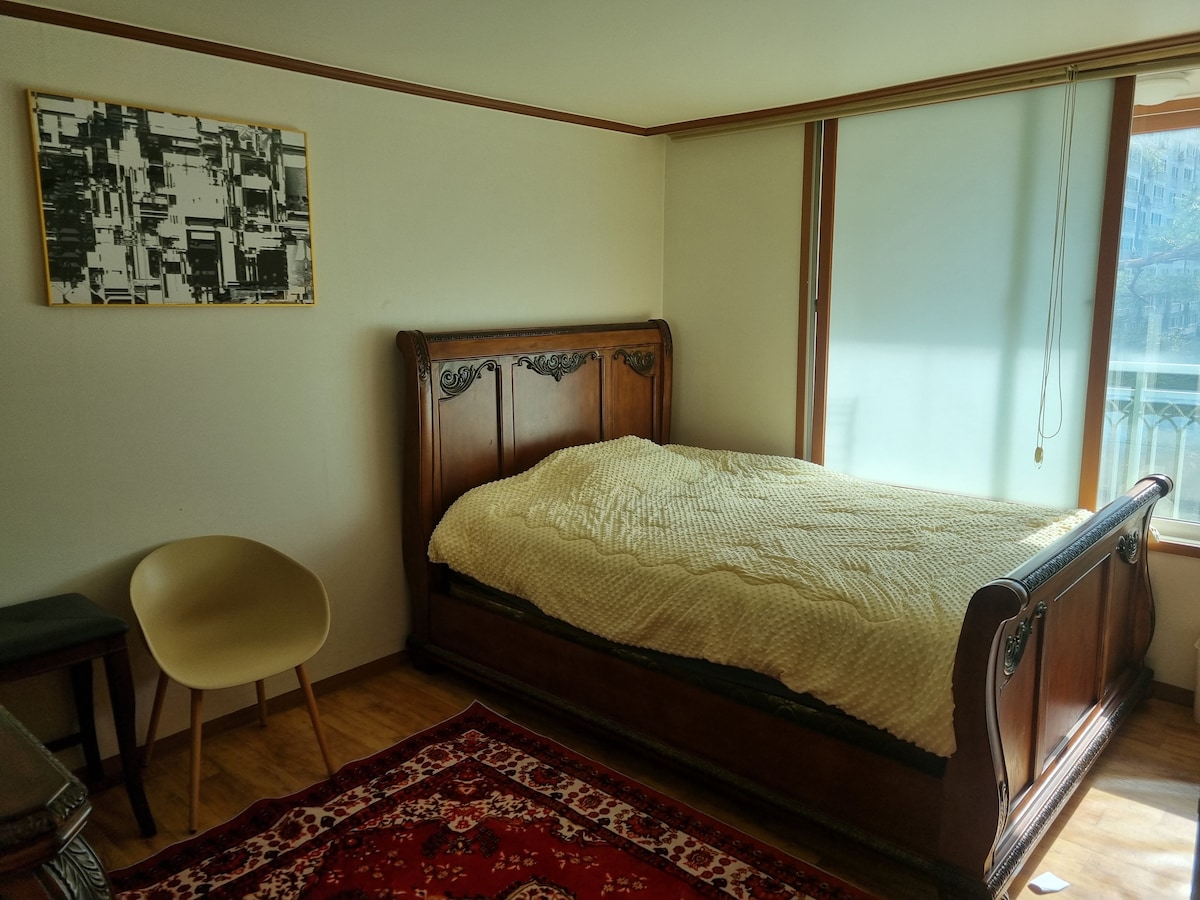 I'm happy to share my house. This house is located two minutes' walk from Suwon Station. Suwon Station Rodeo Street and Maesan Market are close, so you can feel the sentiment of Korea. We have a comfortable queen-sized bed and soft bedding. It can accommodate up to 4 people, and we provide bedding for more than 2 people. Have a good rest.