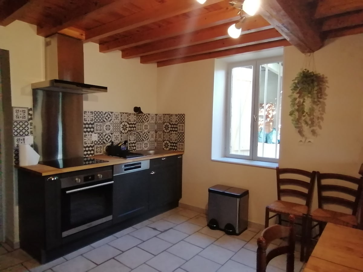 Studio indépendant situé au rez-de-chaussée de la villa des propriétaires. Entrée indépendante, tout équipé, avec cuisine, salle de bain et avec espace extérieur, refait a neuf. Parking gratuit Petit déjeuner compris Motards et véhicules anciens sont les bienvenus. Afin de pouvoir bien nettoyer le studio et le désinfecter après chaque passage il est demandé de quitter le studio dans la matinée tant que le virus est susceptible de circuler.