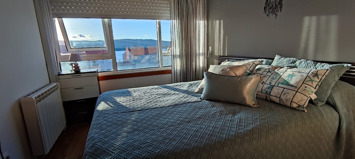 APT1B Apartament cu vedere la mare, pe jos, lângă plajă și port, perfect pentru a vizita întreaga Ría de Arousa și alte orașe de interes turistic special din apropiere, suntem la mai puțin de 1 oră de Santiago de Compostela . Stația de autobuz este la 5 minute de mers pe jos, iar frecvența este la fiecare oră. Există supermarketuri, magazine și baruri în apropiere. Există și autobuz urban. Se livrează complet condiționată de lenjerie de pat, prosoape și ustensile de bucătărie. Situat într-o zonă sigură și fără zgomot.