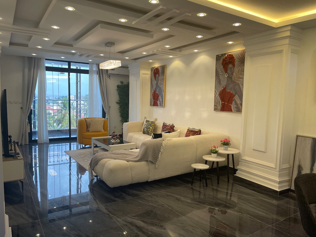 Apartamentul este situat în BONAPRISO, cea mai sigură zonă rezidențială din Douala și veți găsi în apropiere (o rază de 15 m ), supermarketuri ( U, CAZINOU ... ) , restaurante gourmet europene și asiatice,săli de sport , magazine, club de noapte, pub, lounge , toate facilitățile necesare pentru un sejur plăcut și liniștit. Vei avea la dispoziție concierge, room service,Wi-Fi și toată disponibilitatea noastră pentru o ședere memorabilă în Douala