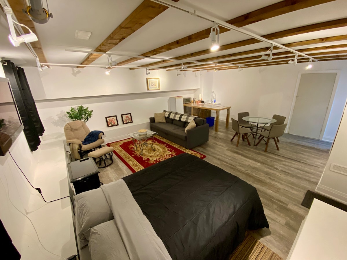 Bine ai venit în apartamentul nostru confortabil privat la subsol cu un dormitor! Situat la subsolul casei noastre, acest spațiu are un dormitor, o baie, o bucătărie și o zonă de living și de luat masa combinate. Te rugăm să reții că apartamentul nostru este situat pe strada Keele, un drum principal, deci este posibil să nu fie potrivit pentru cei care dorm ușor. Apropiere de/de la Aeroportul Internațional Pearson: 15 minute de mers cu mașina Apropiere de/de la centrul orașului Toronto: 50 de minute de mers cu mașina Apropiere de/de la Spitalul Humber River: 2 minute de mers cu mașina