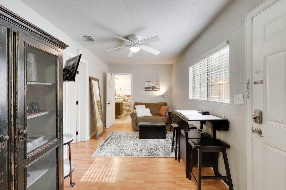 SoCo Cottage Collection 2 este o cabană liniștită chiar lângă Congresul de Sud. Are un dormitor cu pat matrimonial și o canapea extensibilă în zona de living. Spațiul are o chicinetă, Amazon Fire TV cu Amazon Prime, Wi-Fi de mare viteză și baie completă. Această cabană are un perete comun cu casa principală, dar este o locuință complet separată, cu intrare proprie și fără facilități comune. Nu există un loc de parcare rezervat pentru această unitate, însă parcarea stradală este de obicei disponibilă. Ne vedem în curând!