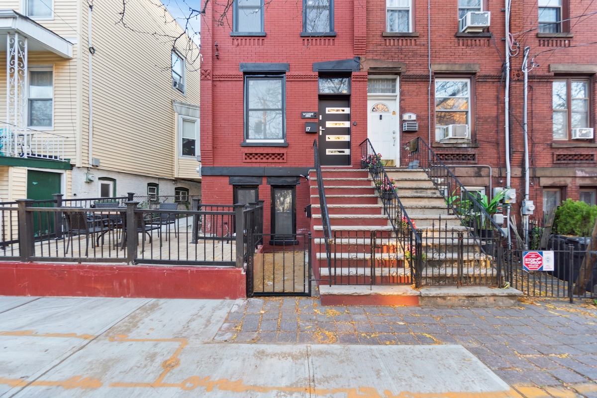Bine ai venit în noua noastră locuință luxoasă cu 3 dormitoare și 2,5 băi, 2200 SQ FT, în secțiunea Bergen-Lafayette din Jersey City, la doar o scurtă distanță de New York! Bucură-te de acces facil la trenul de CALE ferată și Aeroportul Newark. Vizitează obiective turistice emblematice, cum ar fi Times Square, Statuia Libertății, Turnul Libertății și Stadionul MetLife. Descoperă viața de noapte vibrantă și mesele în apropiere. Relaxează-te pe terasa uimitoare de pe acoperiș, cu o canapea confortabilă, zonă de luat masa, jocuri în aer liber și un grătar Weber cu 3 arzătoare, perfect pentru serile de vară!