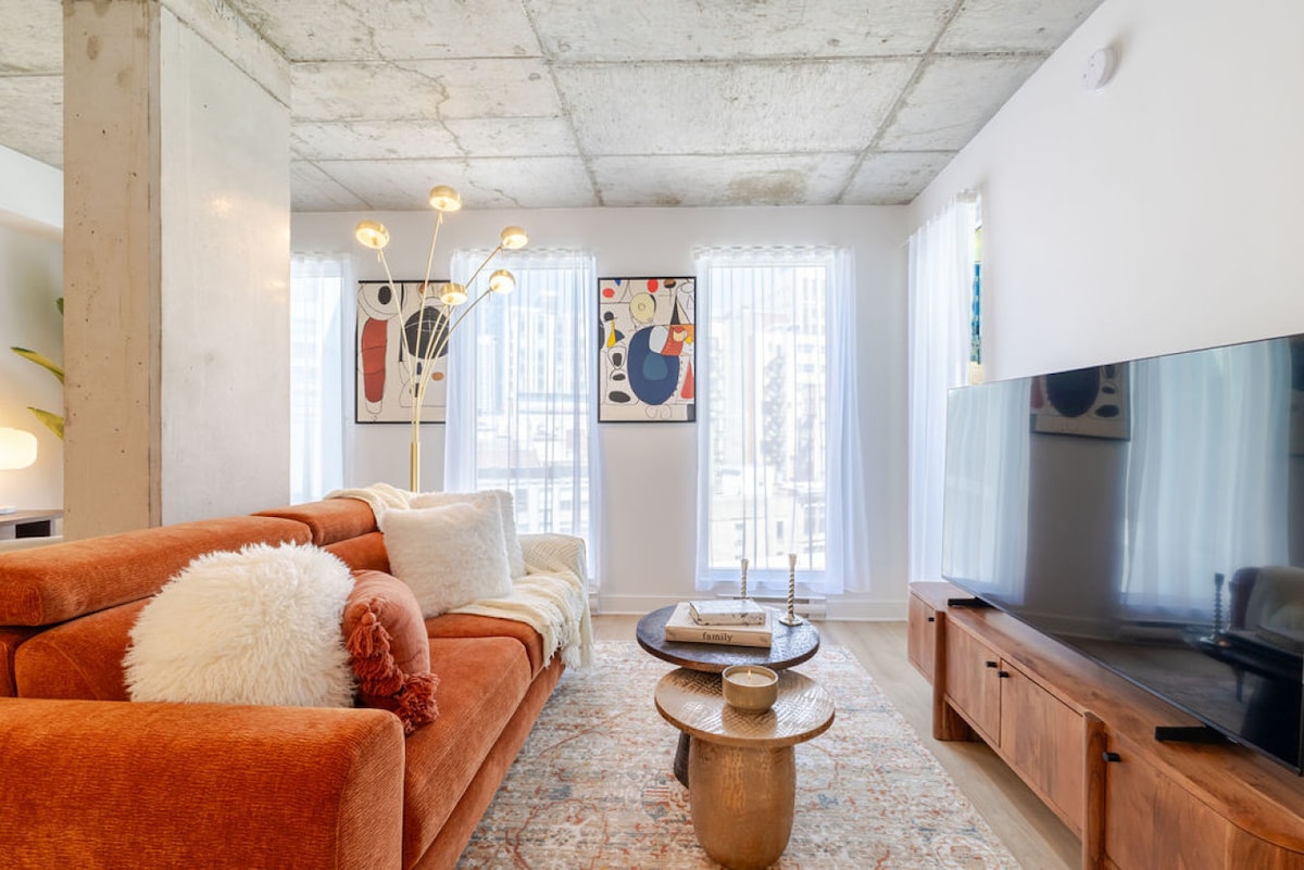 Situat în inima cartierului de divertisment, acest mini-loft elegant și confortabil complet echipat este pied-à-terre perfect pentru a descoperi Montreal, precum și pentru călătorii de afaceri. La câteva minute de Place des Arts și de festivalurile sale de vară, restaurante, cafenele, magazine, teatre, teatre pe Rue Sainte-Catherine sau Boulevard Saint-Laurent și Cartierul Latin. Wi-Fi de mare viteză, Netflix, Disney Channel. Acces gratuit la sala de sport și co-working-ul imobilului.