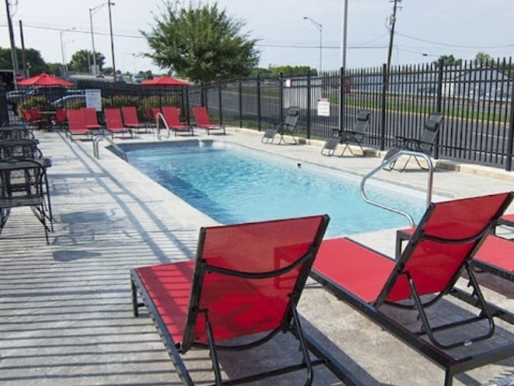 Acest apartament de lux este perfect pentru asistente medicale care călătoresc, profesioniști, călători solo sau cupluri. Bucătăria complet utilată are o friteuză cu aer, o oală de gătit, o cafenea și un aparat bartesian pentru a te face să te simți ca acasă. Complexul de apartamente oferă facilități uimitoare, inclusiv o terasă pe acoperiș, două curți, o piscină, o sală de yoga, un centru de fitness și un spațiu modern de co-working. Intră în acest spațiu complet mobilat, de lux, unde fiecare detaliu a fost proiectat ținând cont de confortul tău.