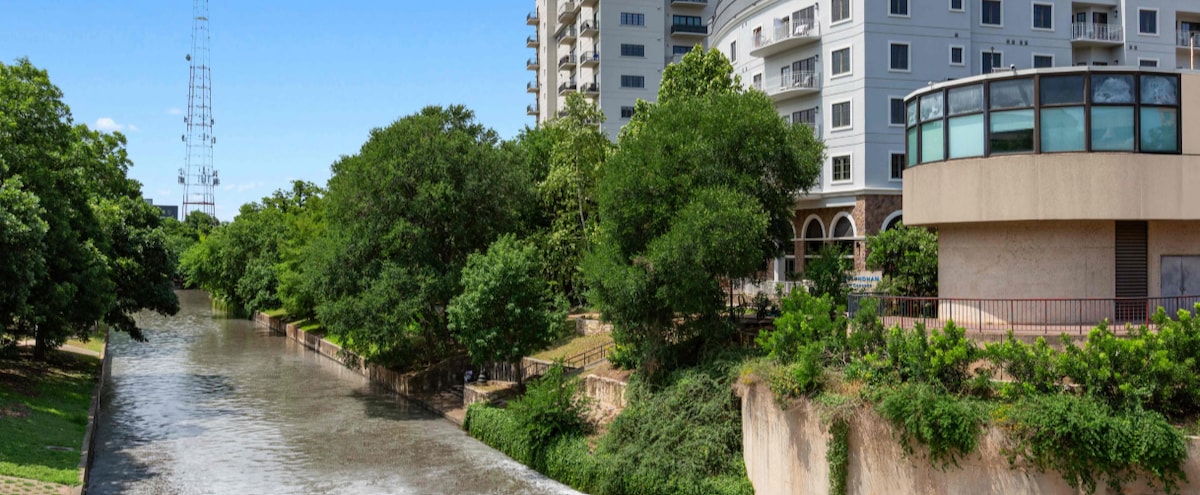 Bine ai venit în frumoasa noastră oază de pe malul râului, o ascunzătoare specială situată chiar pe renumita plimbare pe râul San Antonio. Suntem la doar o aruncătură de băț distanță de unele dintre atracțiile de top din San Antonio, inclusiv faimoasa grădină zoologică San Antonio, Grădina Yanaguana și districtul istoric Alamo Plaza. Indiferent dacă alegi să rezervi un apartament spațios sau o cameră confortabilă pe malul râului în refugiul nostru pitoresc, te vei trezi înconjurat de un decor de bun gust, dotări moderne și priveliști uimitoare ale râului.