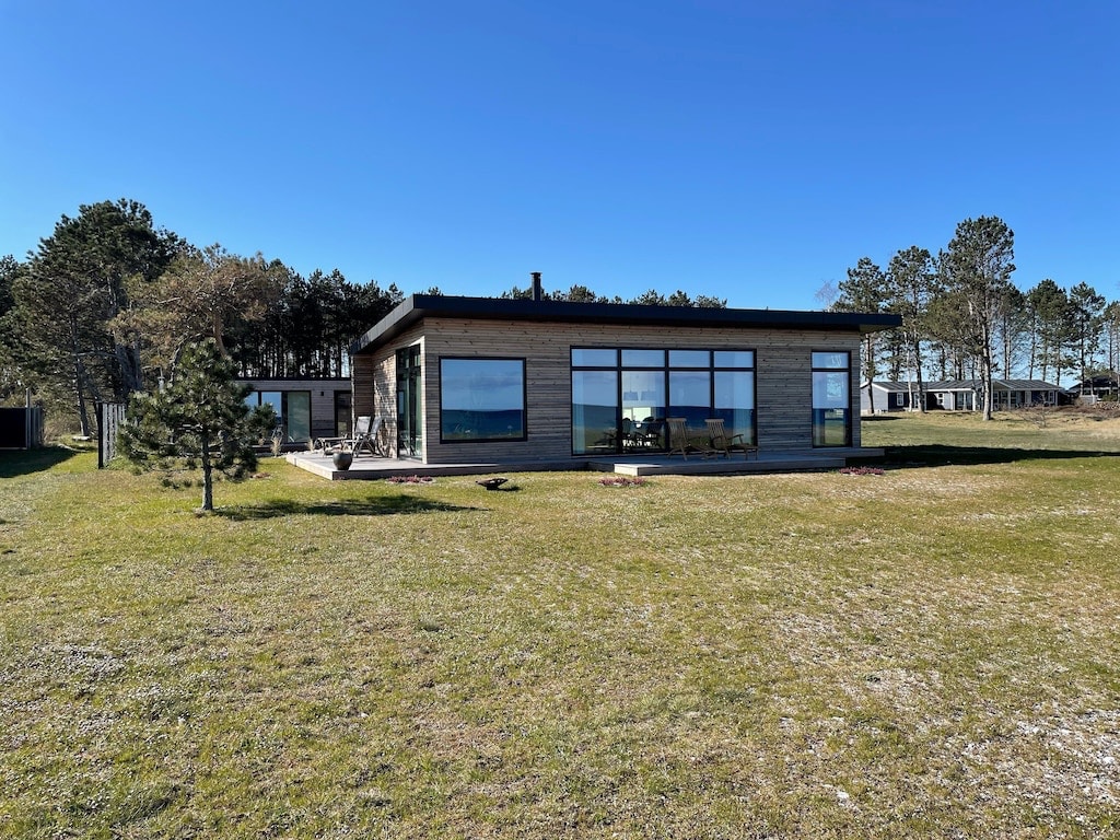 Situată direct pe strada Dyngby/Saxild, potrivită pentru copii, veți găsi această cabană cu adevărat unică și recent renovată din anii '60, cu accent pe crearea unui decor exclusivist și confortabil. La 5 metri de plajă, veți găsi o saună uimitoare în aer liber, cu vedere netulburată la plajă și la mare. Casa este la 30 de metri de plajă, astfel încât să puteți cultiva în aer liber și să vă bucurați de terasa mare și frumoasă din lemn. Terasa poate fi accesată atât din bucătărie, cât și din living și este un punct de adunare natural în timpul verii.
