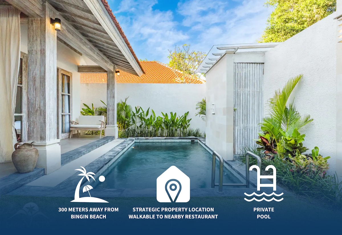 O vilă inspirată în mod tradițional, cu o poftă de mâncare modernă, situată în Bingin. Bingin Beach și Dreamland Beach sunt ușor accesibile. Bingin se dezvoltă în cea mai populară destinație turistică modernă, cu restaurante, baruri și magazine excelente. Plajele cu nisip alb, cluburile de pe plajă și pauzele de surf de renume mondial sunt la doar o scurtă plimbare distanță. Vila are baie proprie, iar dormitorul este dotat cu aer condiționat. În grădina luxuriantă, vei avea propria piscină privată.
