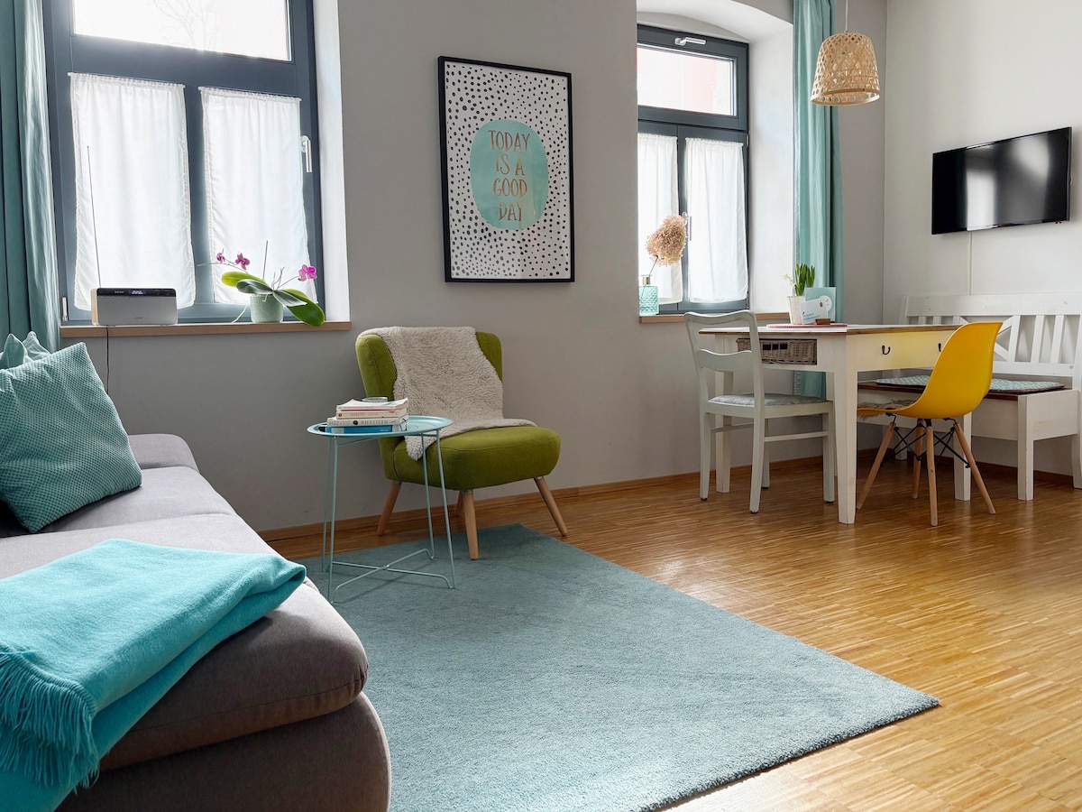 Bună și bine ai venit în noua ta casă de vacanță din inima orașului Dresda. Te poți aștepta la un apartament foarte elegant, modernizat, de 3,5 camere, cu 2 dormitoare, un pat dublu suplimentar în living, cu vedere la grădina istorică. Bucură-te de soarele de seară pe terasă cu o cină sau cu un pahar de vin și un foc de lemne în cadă cu hidromasaj. Vei găsi tot ce ai nevoie pentru un timp de neuitat în Dresda, la fața locului.