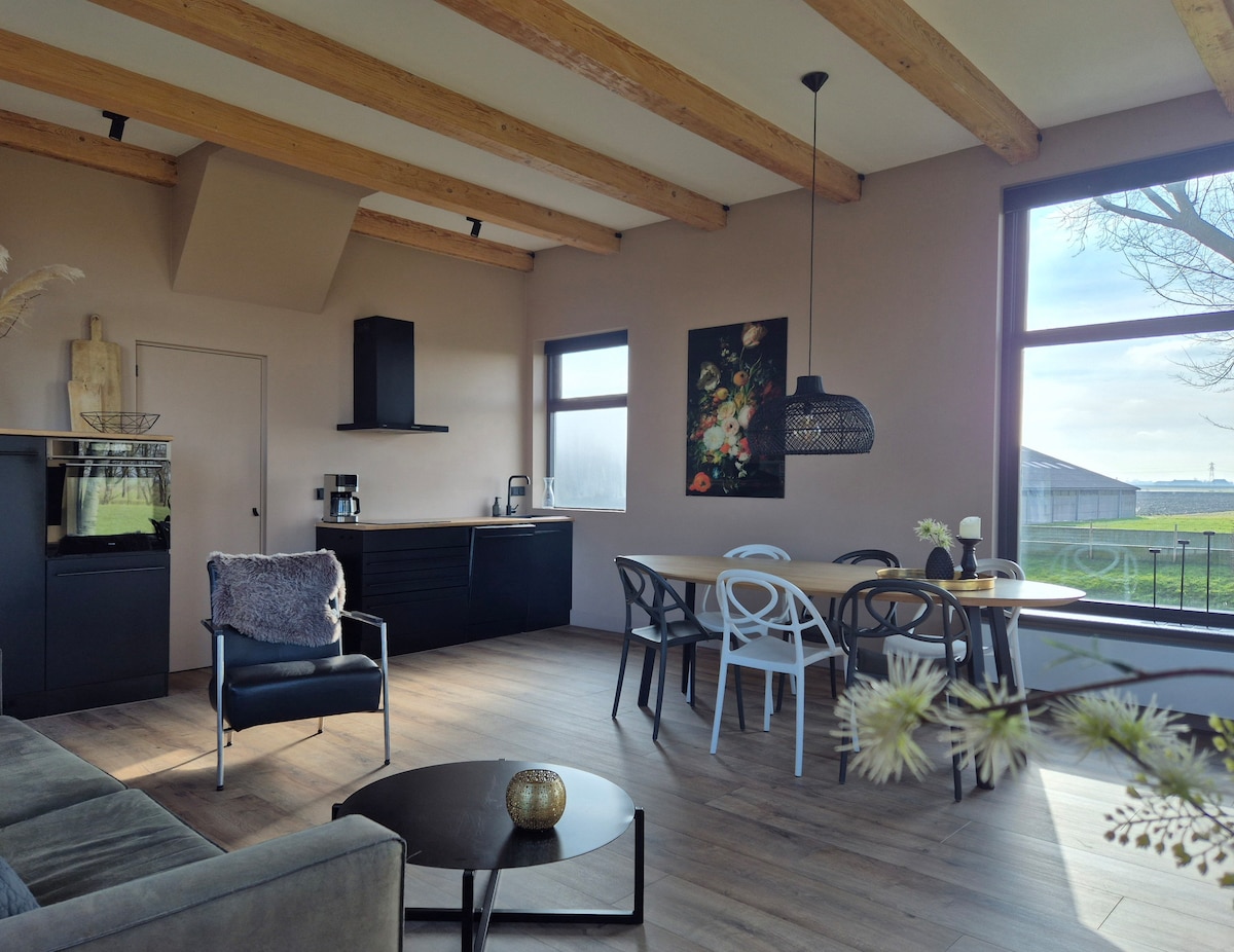 Nieuw sinds zomer 2025 ons stijlvol ingericht gastenverblijf. Geniet van rust, ruimte en een prachtig uitzicht over de weilanden. Ons stijlvol ingerichte gastenverblijf biedt plek aan 6 personen en beschikt over een luxe keuken, badkamer en een gezellige woonkamer. 3 slaapkamers op de 1ste verdieping. Een knusse film- en tv-ruimte. Een fijne buitenzitplek met uitzicht over de weilanden. De ideale plek om helemaal tot rust te komen en te genieten van de Friese natuur. APARTE FILMKAMER!