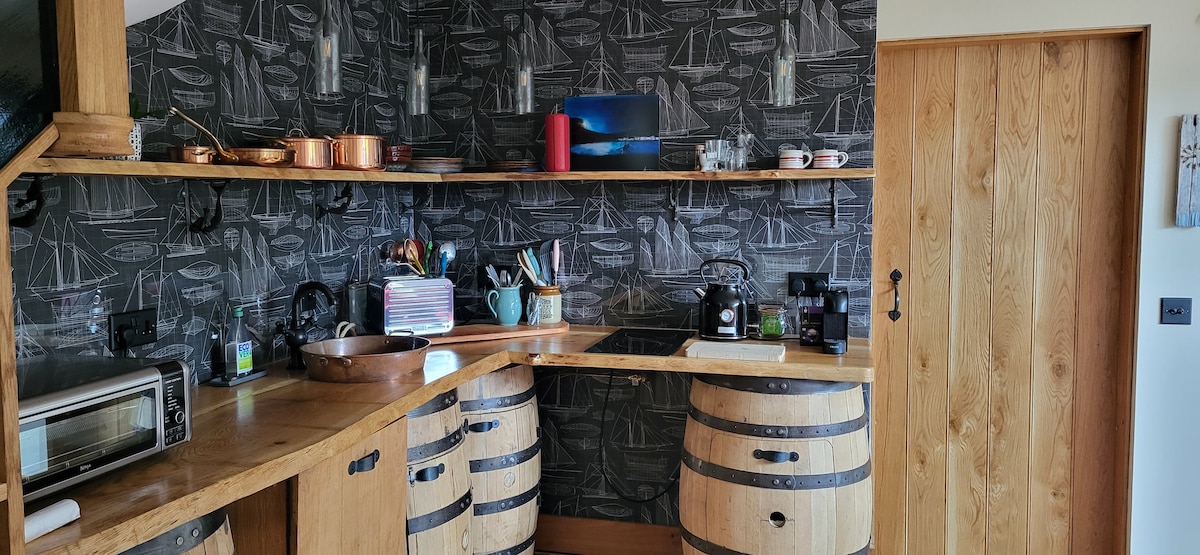 Red Fox Retreat este cea mai bună locație de lux pentru escapada de glamping. O răsturnare a „podului” mai convențional, cabana are un interior din lemn curbat intrat dintr-o ușă arcuită în fața căreia este situat un pat matrimonial perfect amenajat, cu vedere uimitoare la creasta Trottenish și la croft (teren agricol) care înconjoară proprietatea. Este cald și confortabil să te protejezi împotriva elementelor și totuși ușor și aerisit. Cabana este accesată printr-o zonă spectaculoasă de punte sub acoperire.