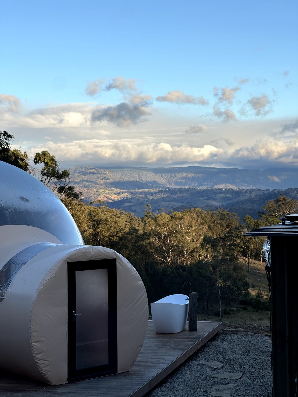 **A Truly Magical Experience** Imagine relaxing in a transparent Dome watching the Sun set over the stunning Blue Mountain view, followed by a unique and immersive night sleeping beneath a blanket of stars. Unwind in the hot water bathtub, soak in the views, and reconnect with the beauty of nature. Whether it's for a special occasion or just to escape the city, this romantic Dome is perfect for couples looking for an unforgettable retreat. Book now before the dates fill up!