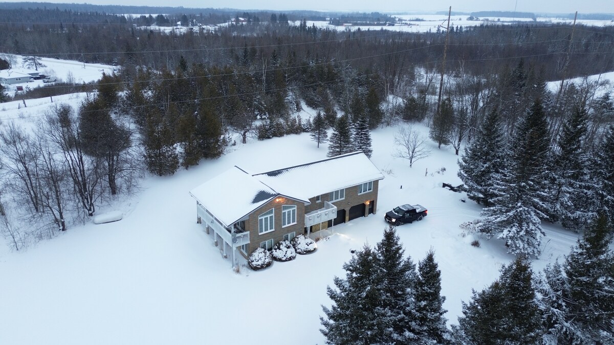 Evadează la țară și relaxează-te. La doar 1,5 ore de oraș, această cabană luxoasă doarme până la 12 persoane și oferă o buclă de drumeții, un iaz de înot de 1 acru, volei, ping-pong, o trambulină. (Sau lucrează cu ușurință datorită rețelei Wi-Fi de mare viteză.) Cu cluburi de schi, trasee de drumeții Bruce Trail, ciclism și snowmobile chiar în fața ușii, plictiseala nu este o opțiune. Aventurează-te în Collingwood, sari în Valea Hockley sau bucură-te de liniștea din cada cu hidromasaj. **Întreabă despre reducerile de luni până vineri **